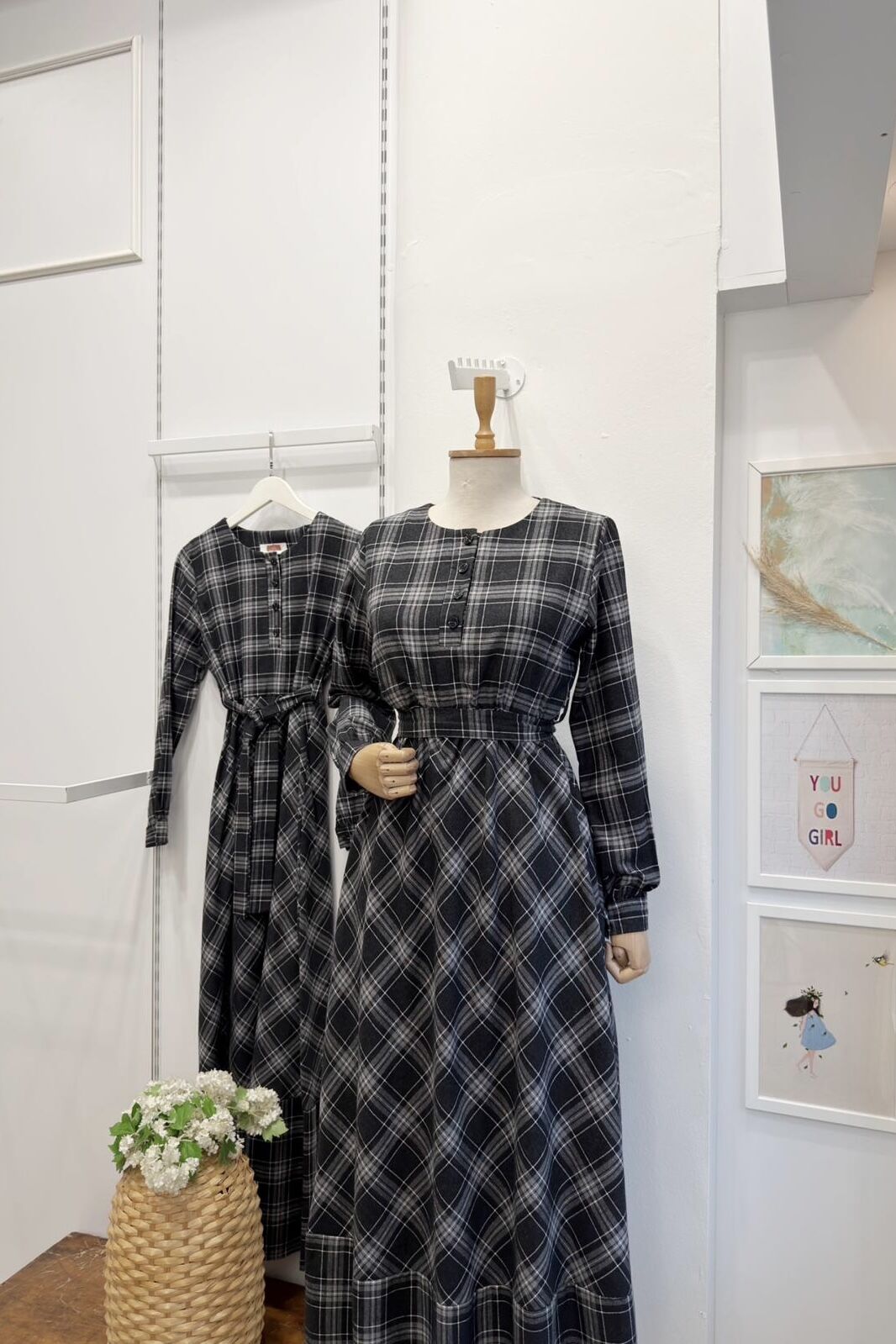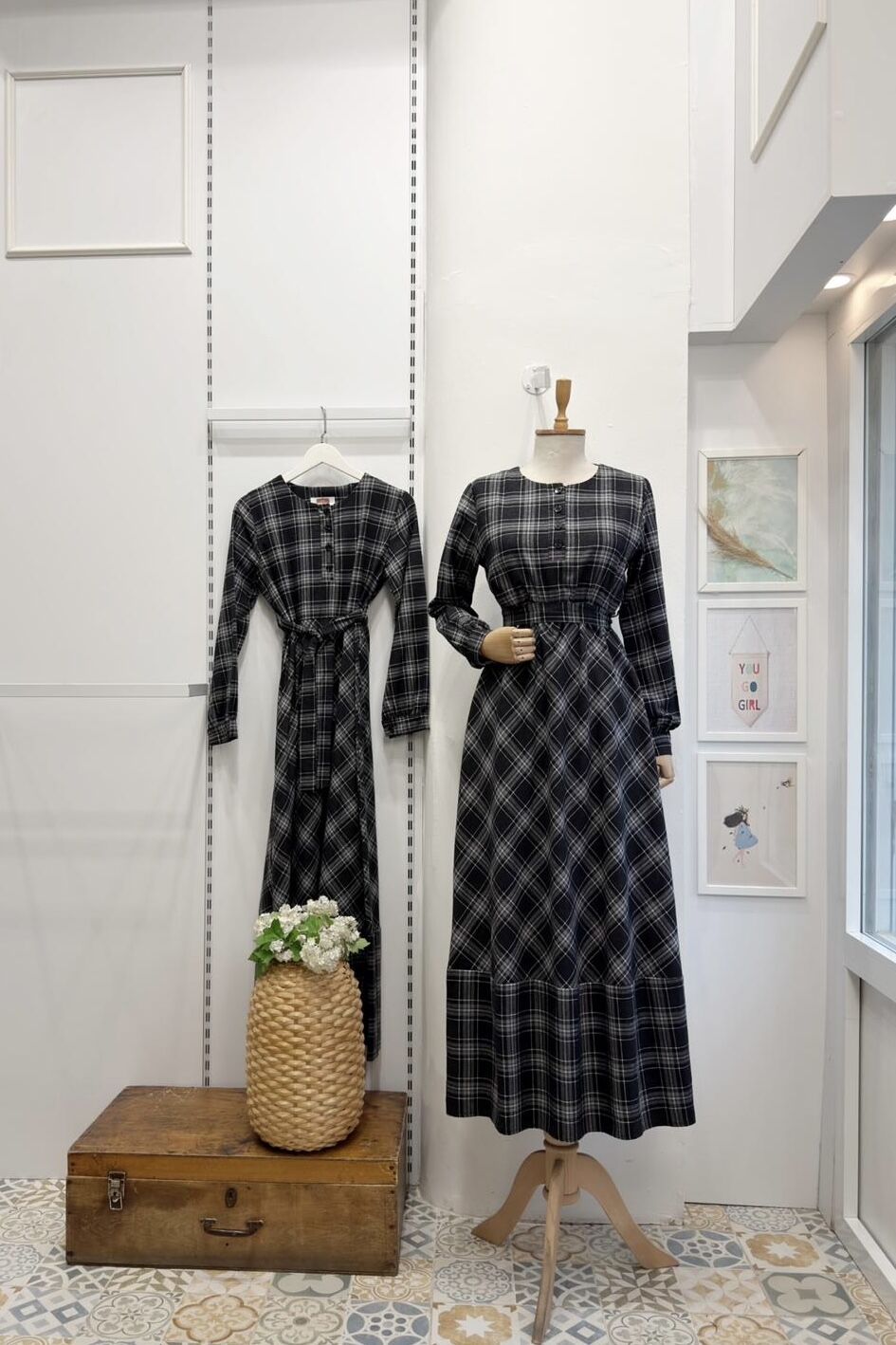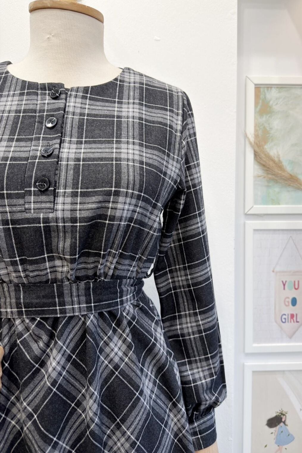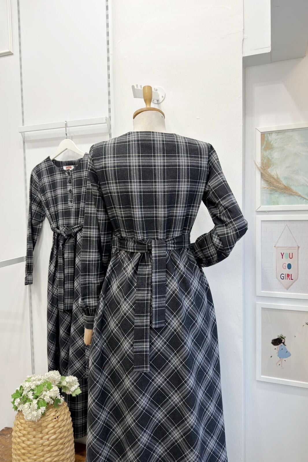 Siyah Ekoseli Monarch Elbise