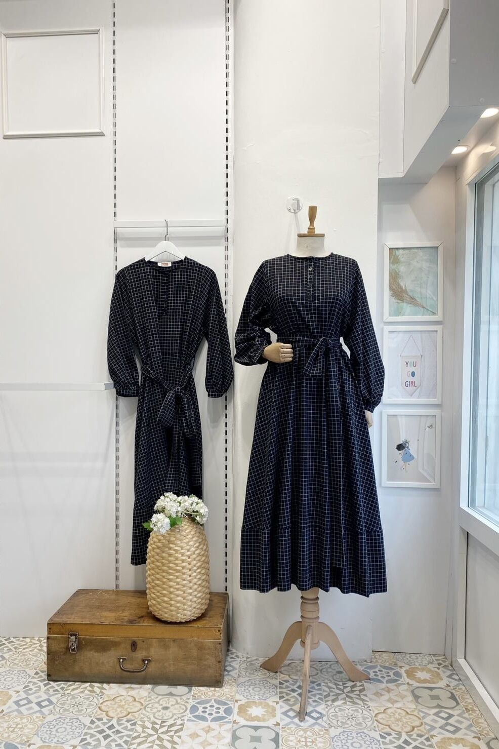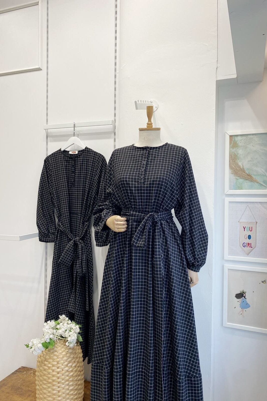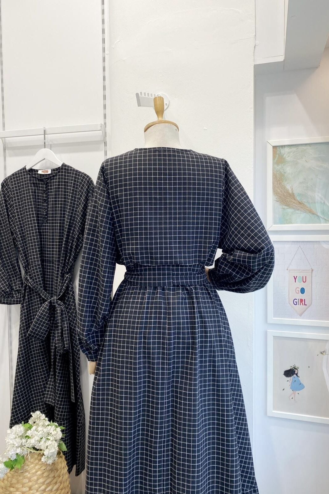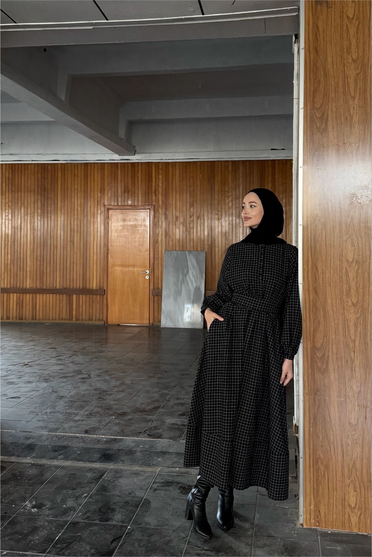 Siyah Kare Çizgili Sweety Elbise