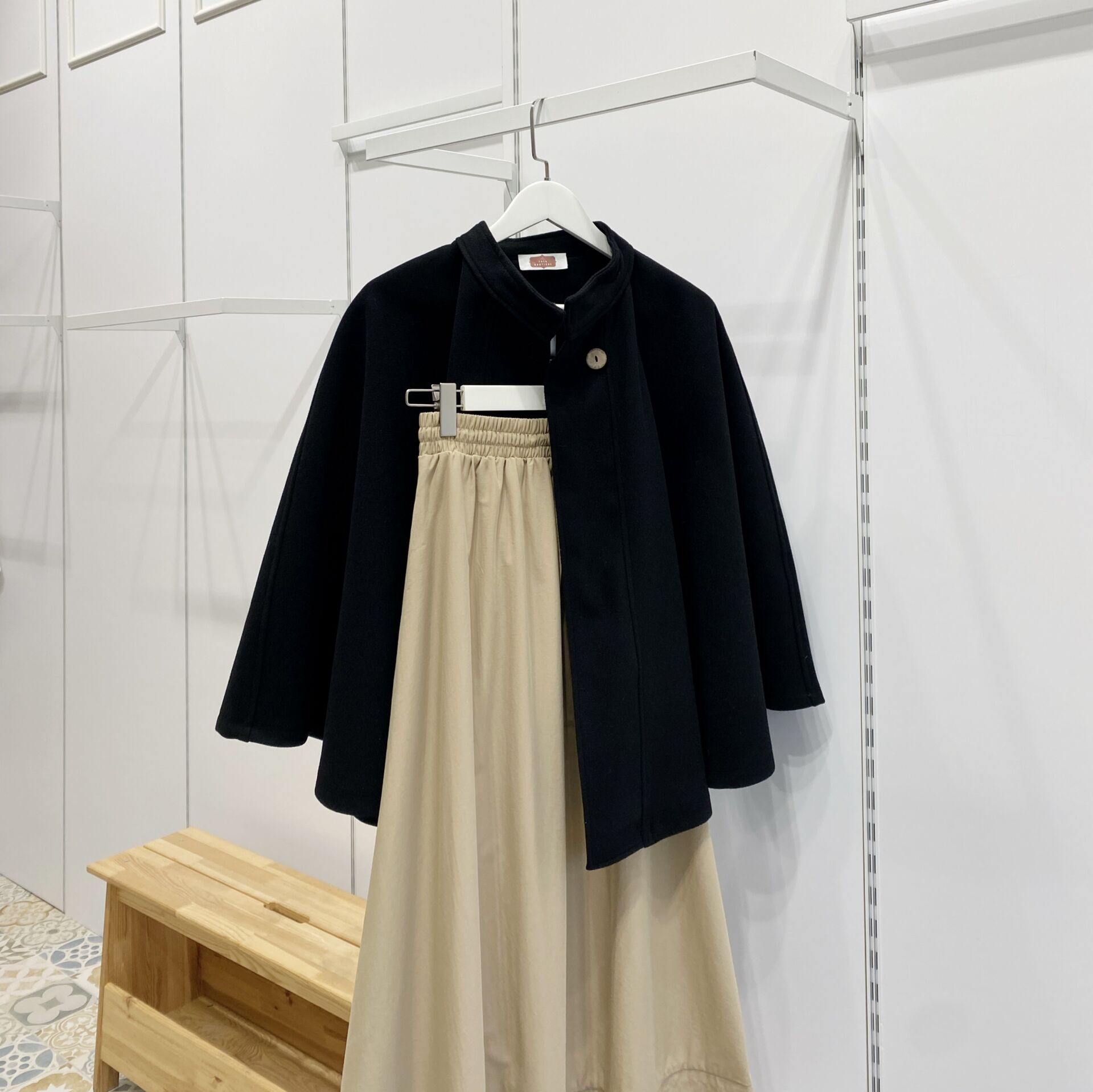 Siyah Kaşe Kumaş Pelerin Ceket