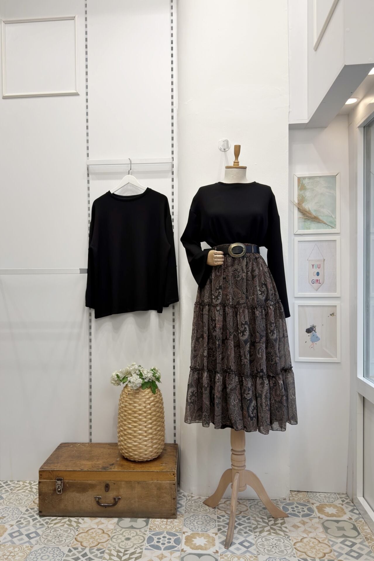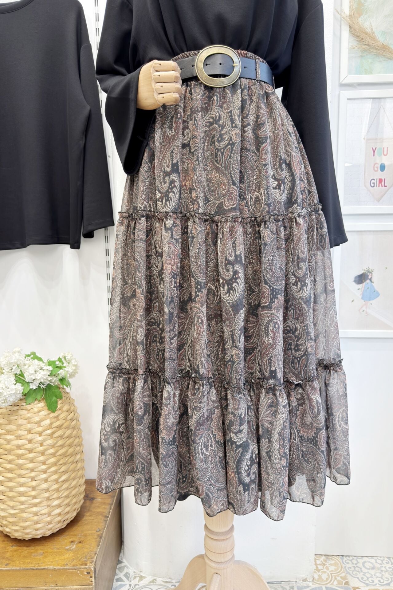 Siyah Kat Kat Kemerli Şifon Etek
