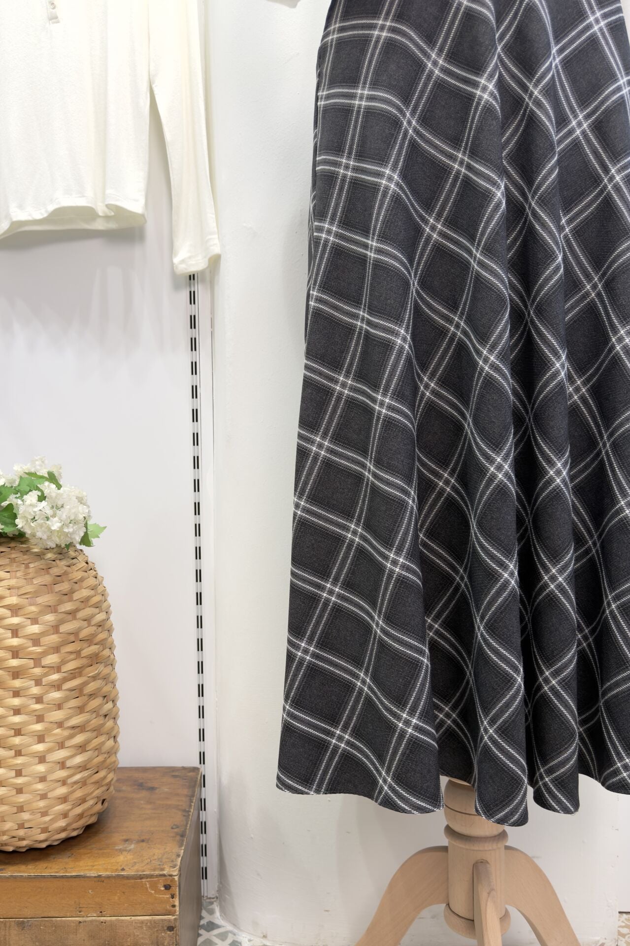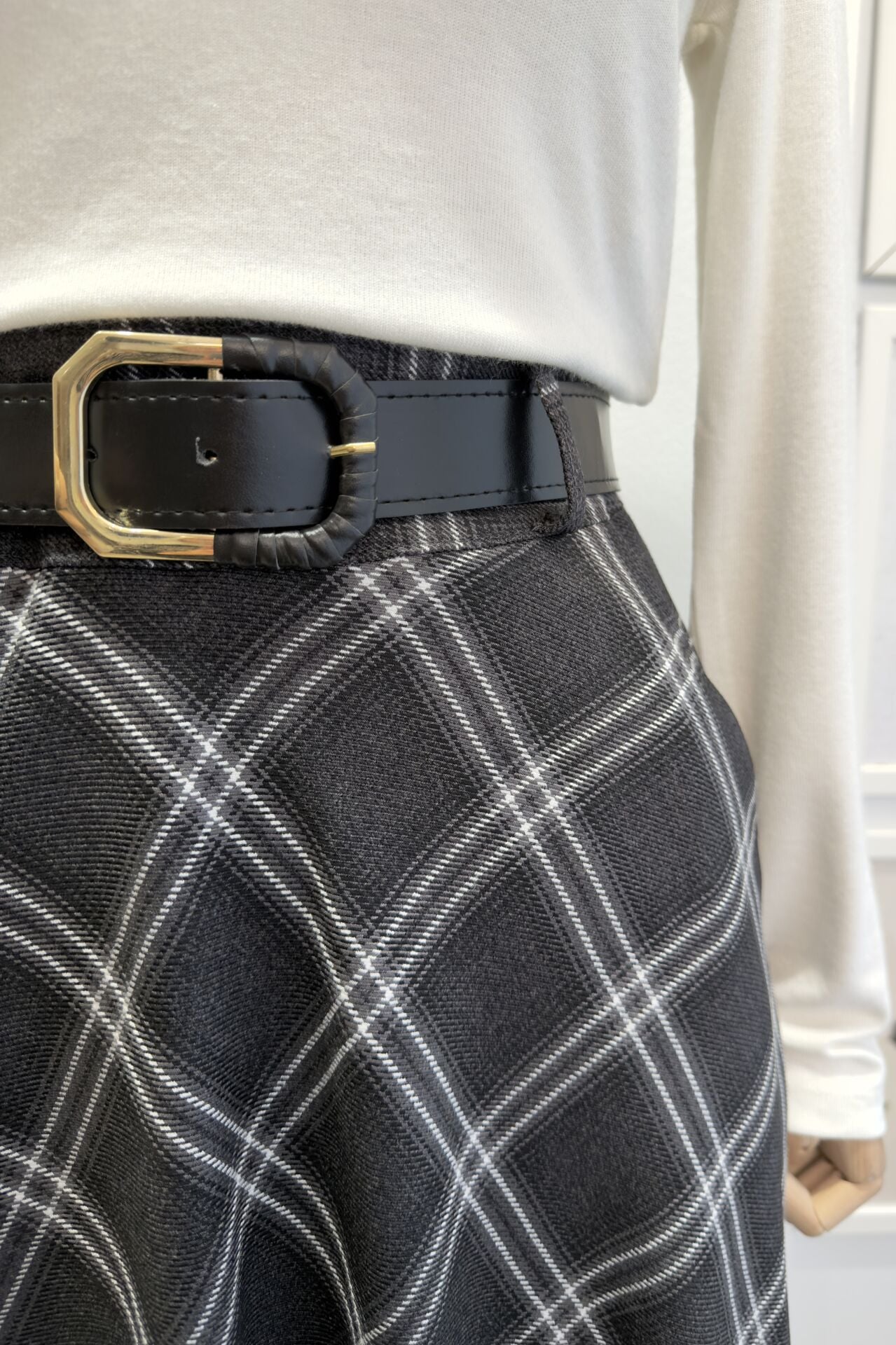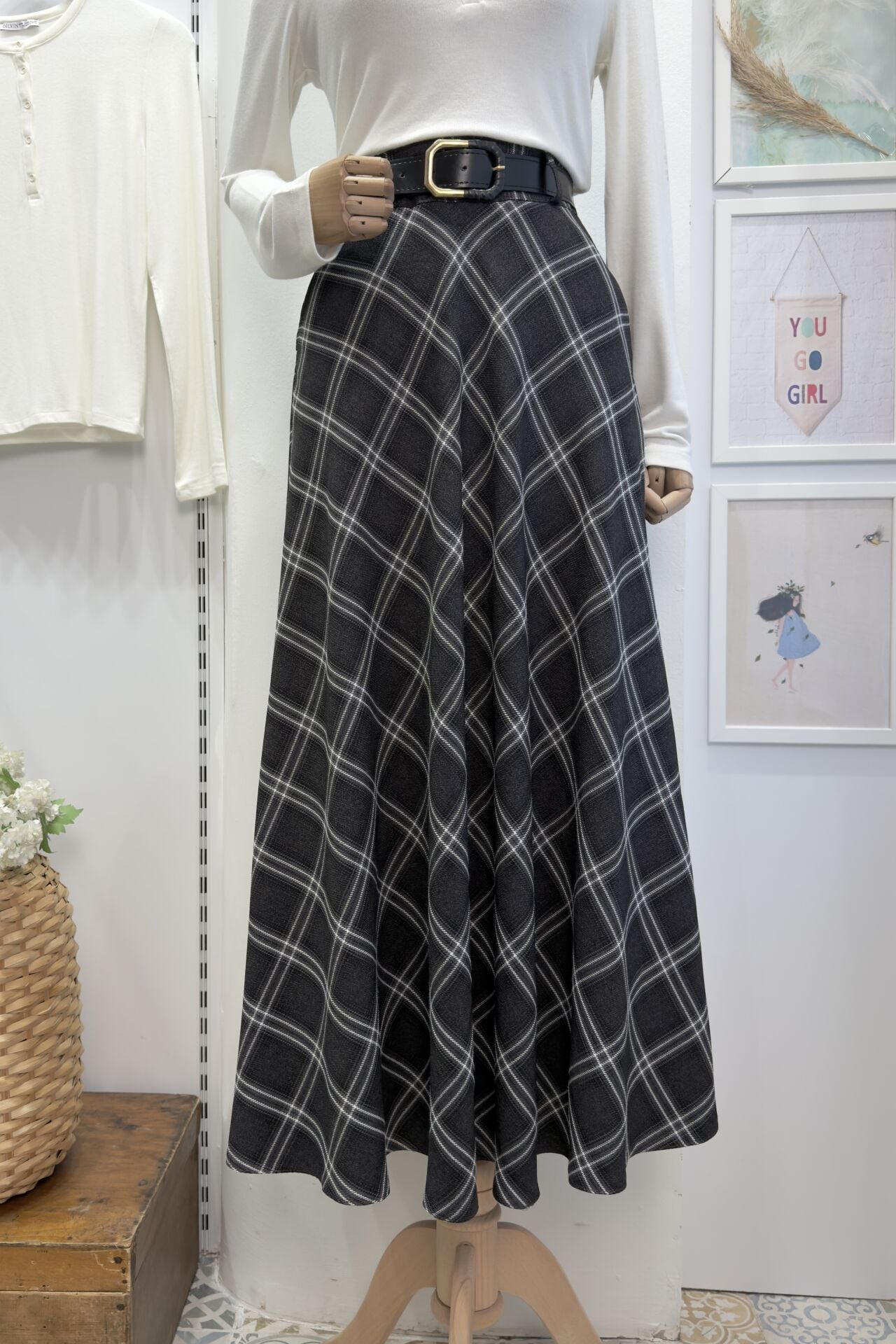 Siyah Kemer Detaylı Ekoseli Notes Etek