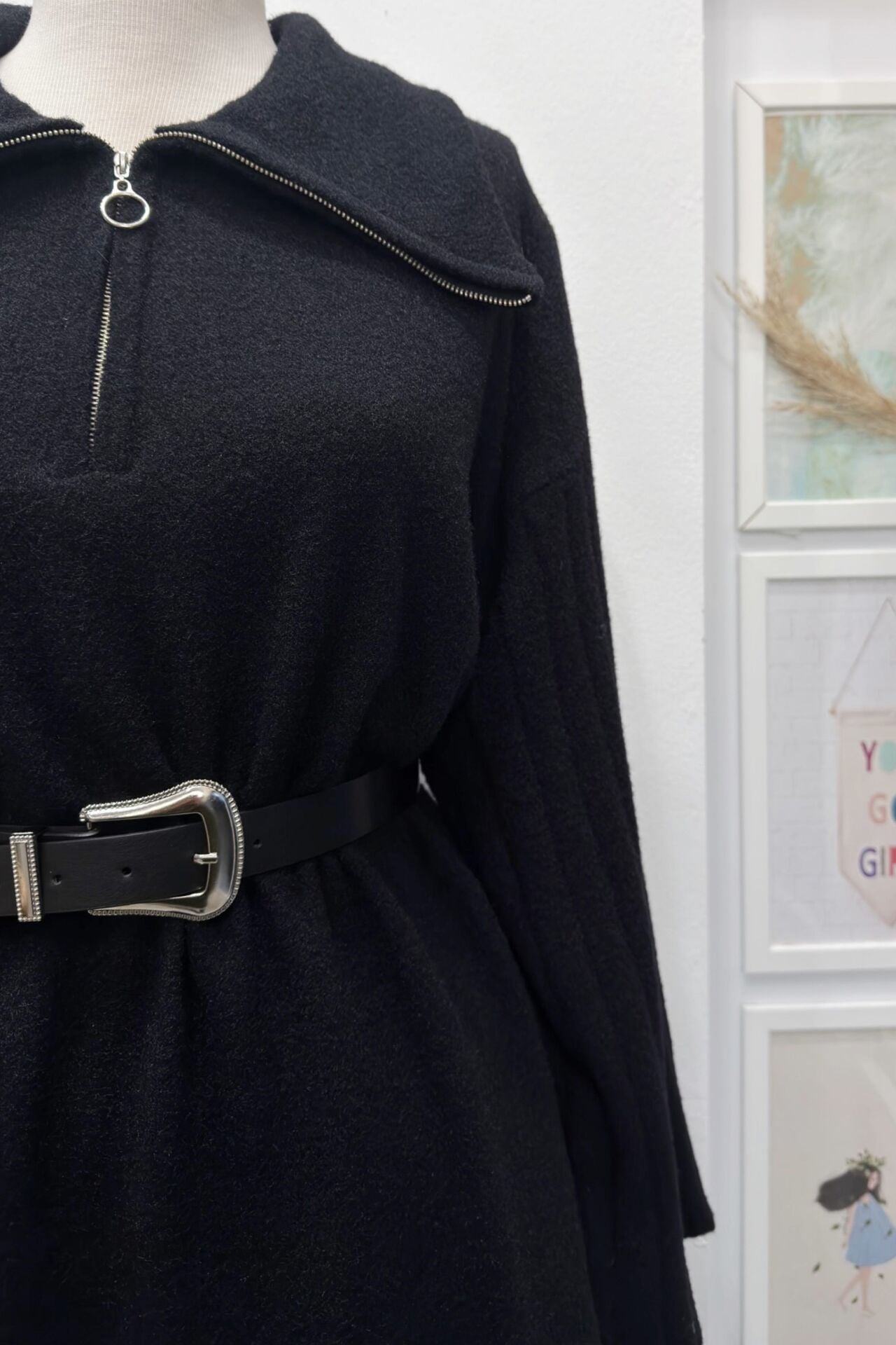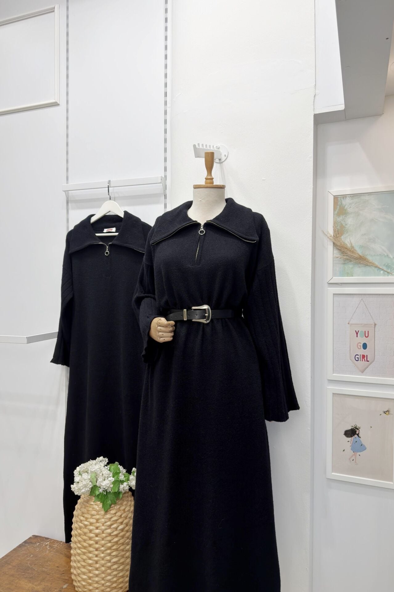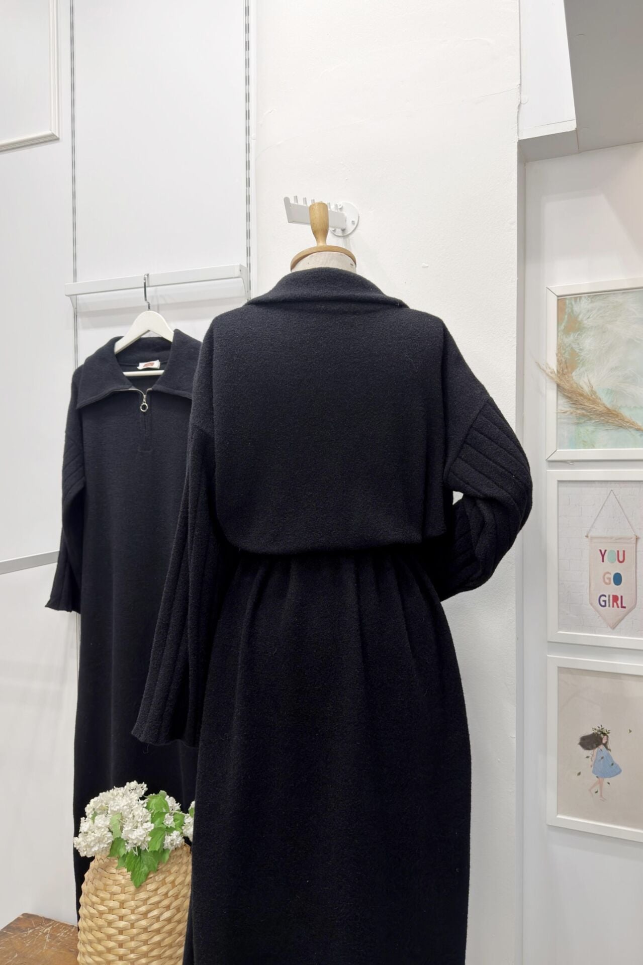 Siyah Kolları Pile Detaylı Fermuarlı Triko Elbise 44102