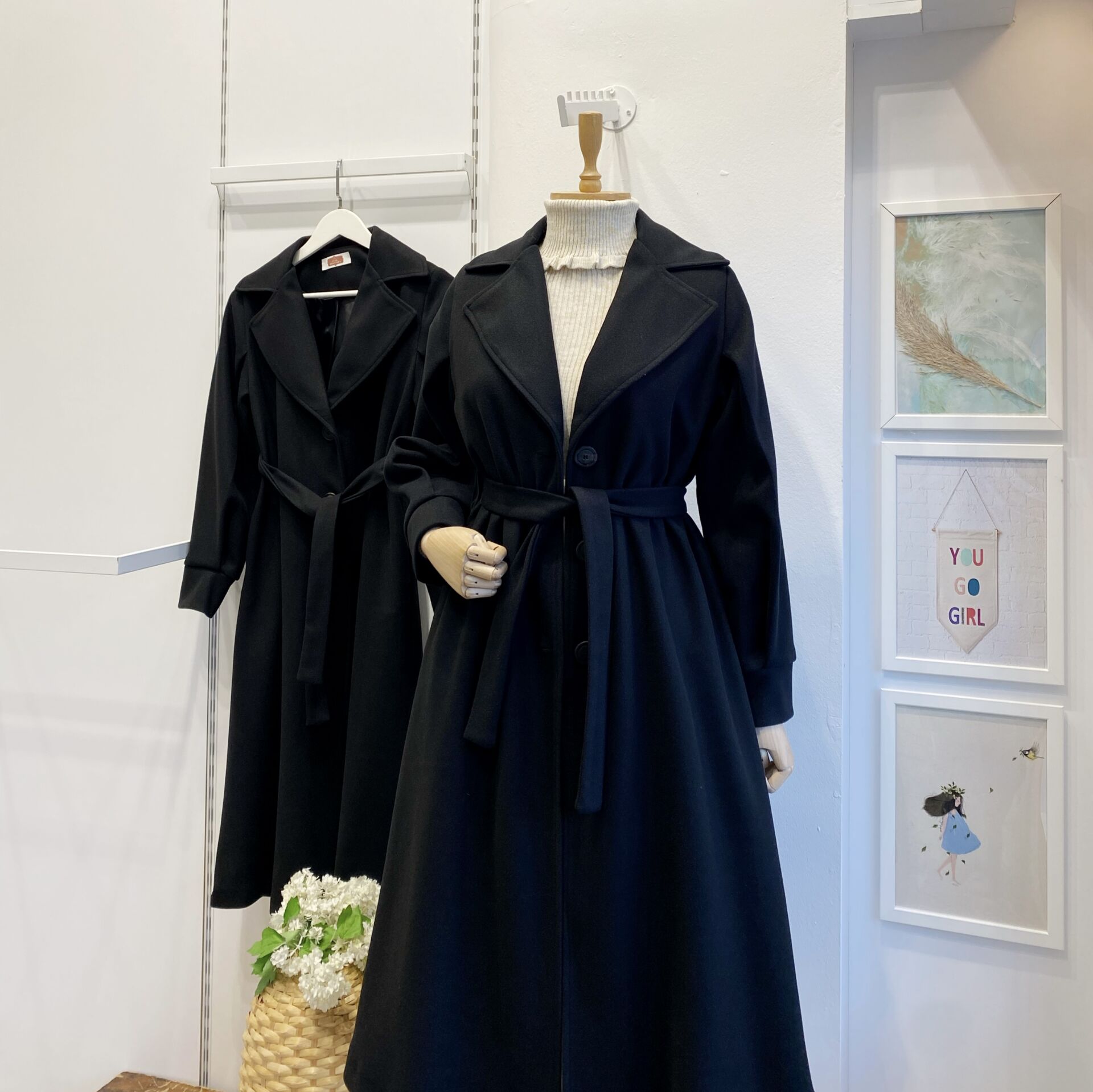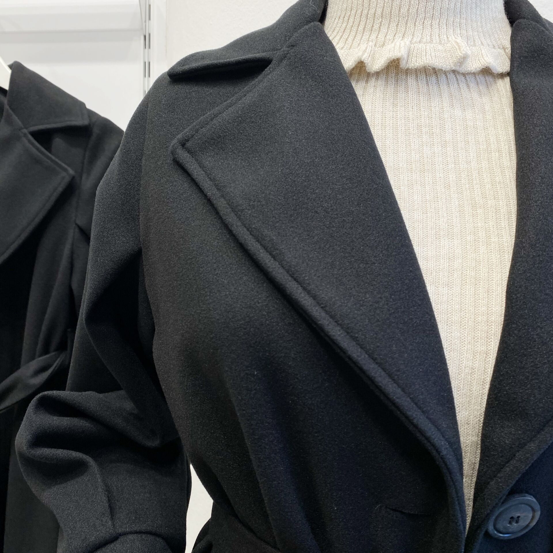 Siyah Kolu Pile Detaylı Kaşe Kaban