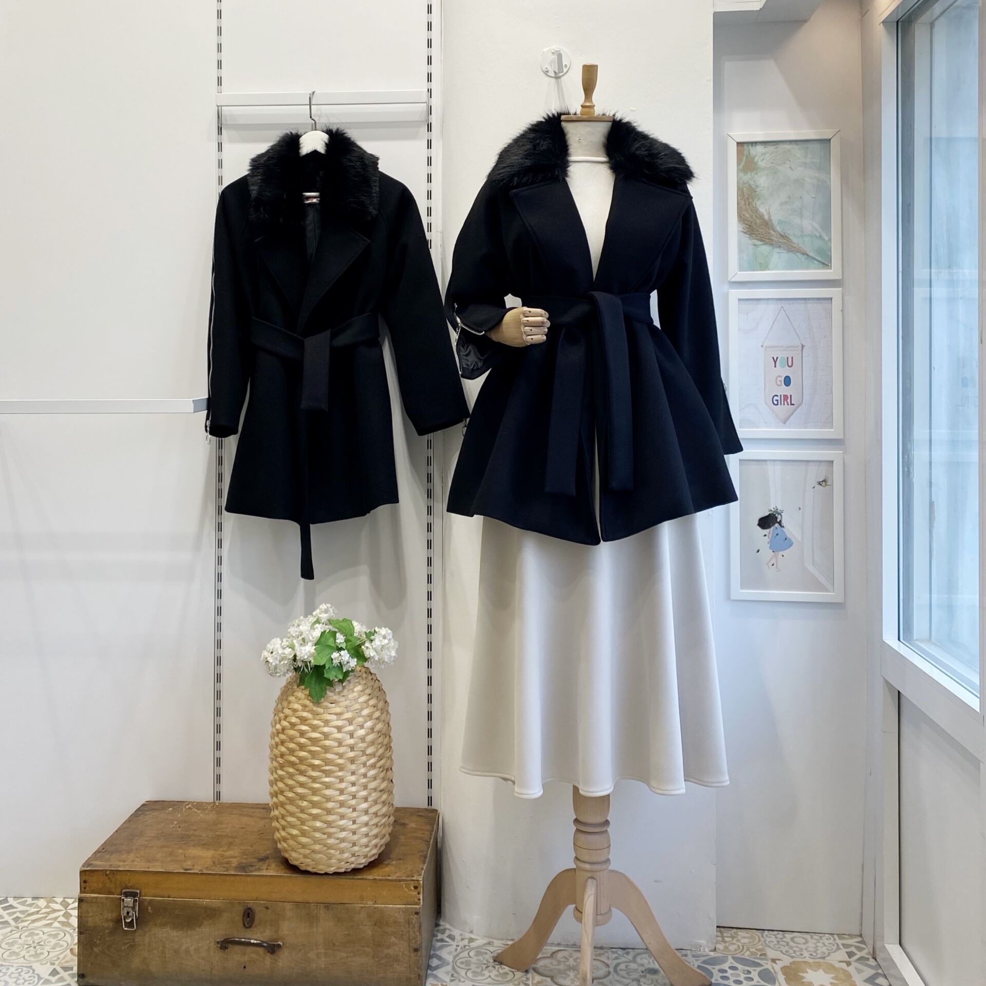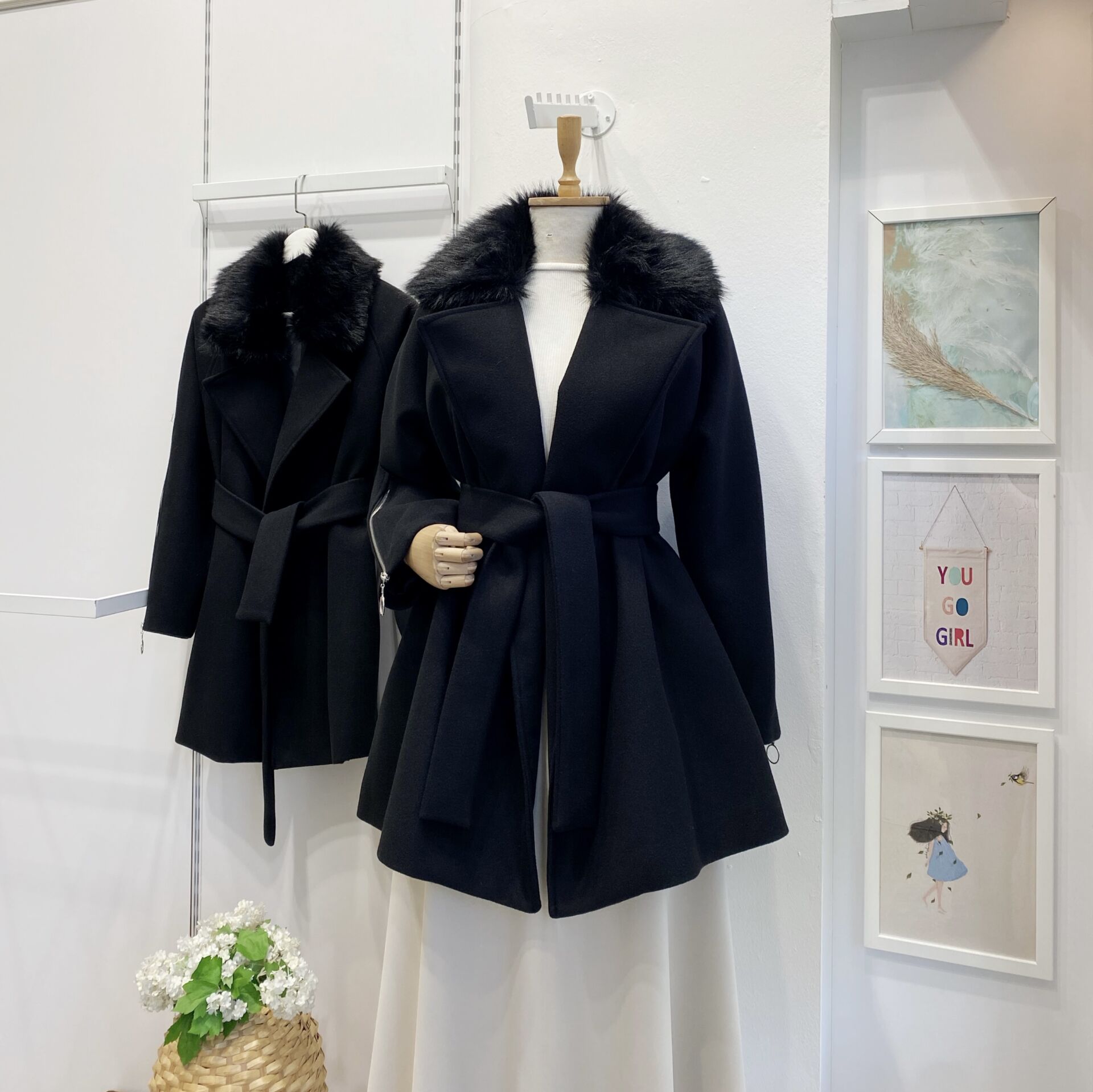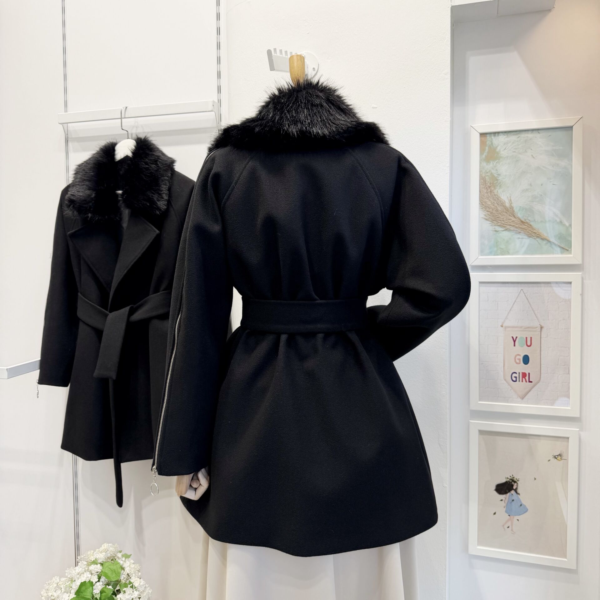 Siyah Kürk Yakalı Kaşe Kaban