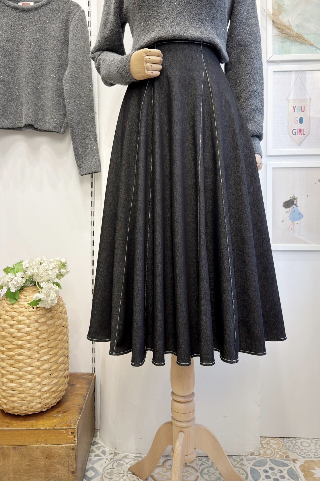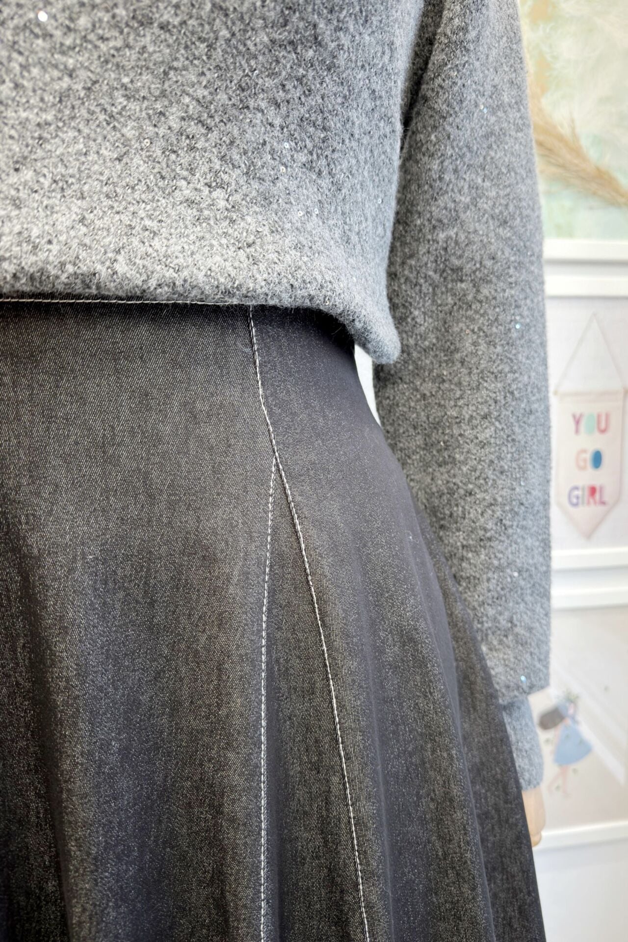Siyah Likralı Kot Kumaş Langley Etek