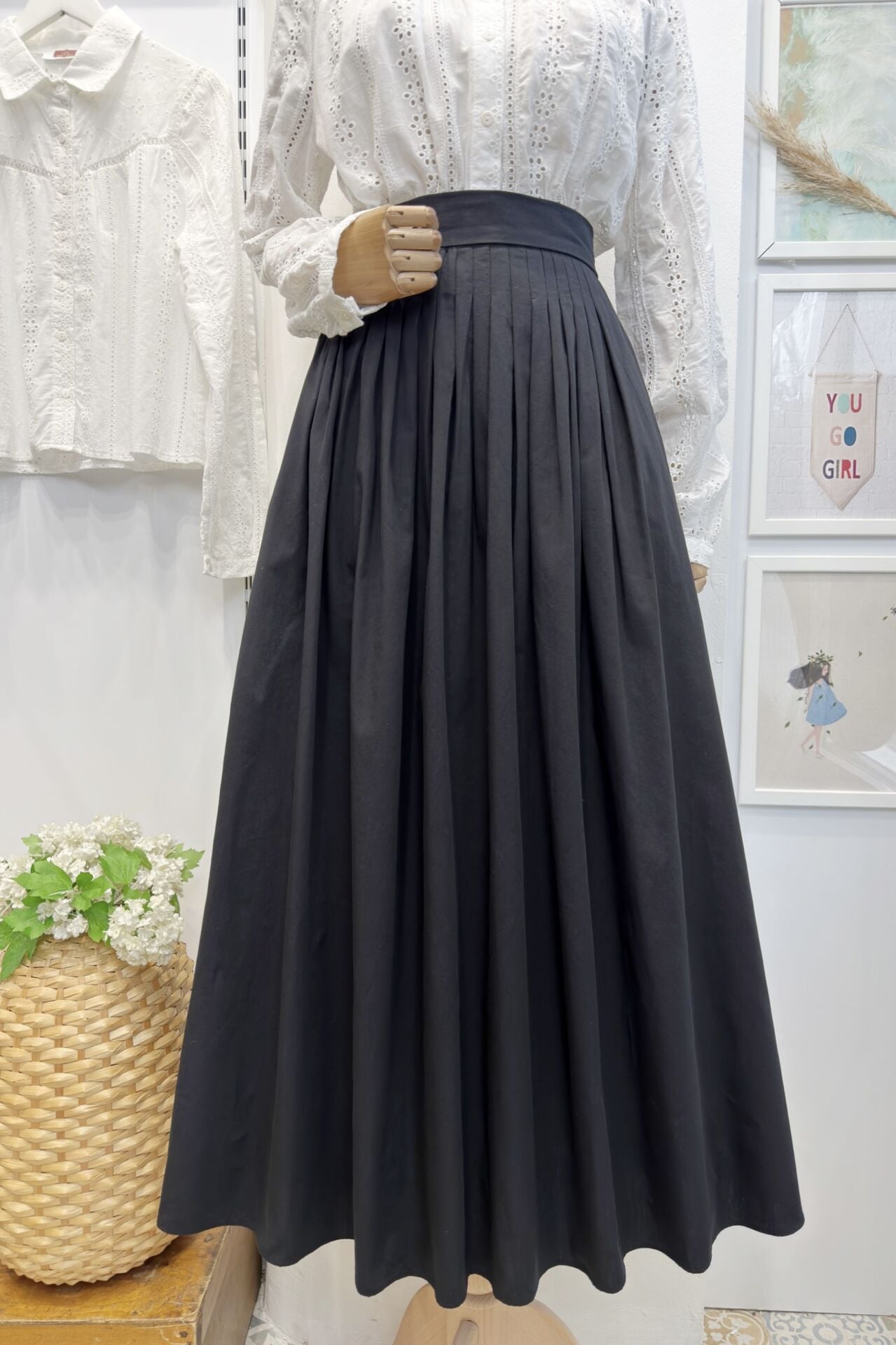 Siyah Minik Pileli Poplin Sofia Etek