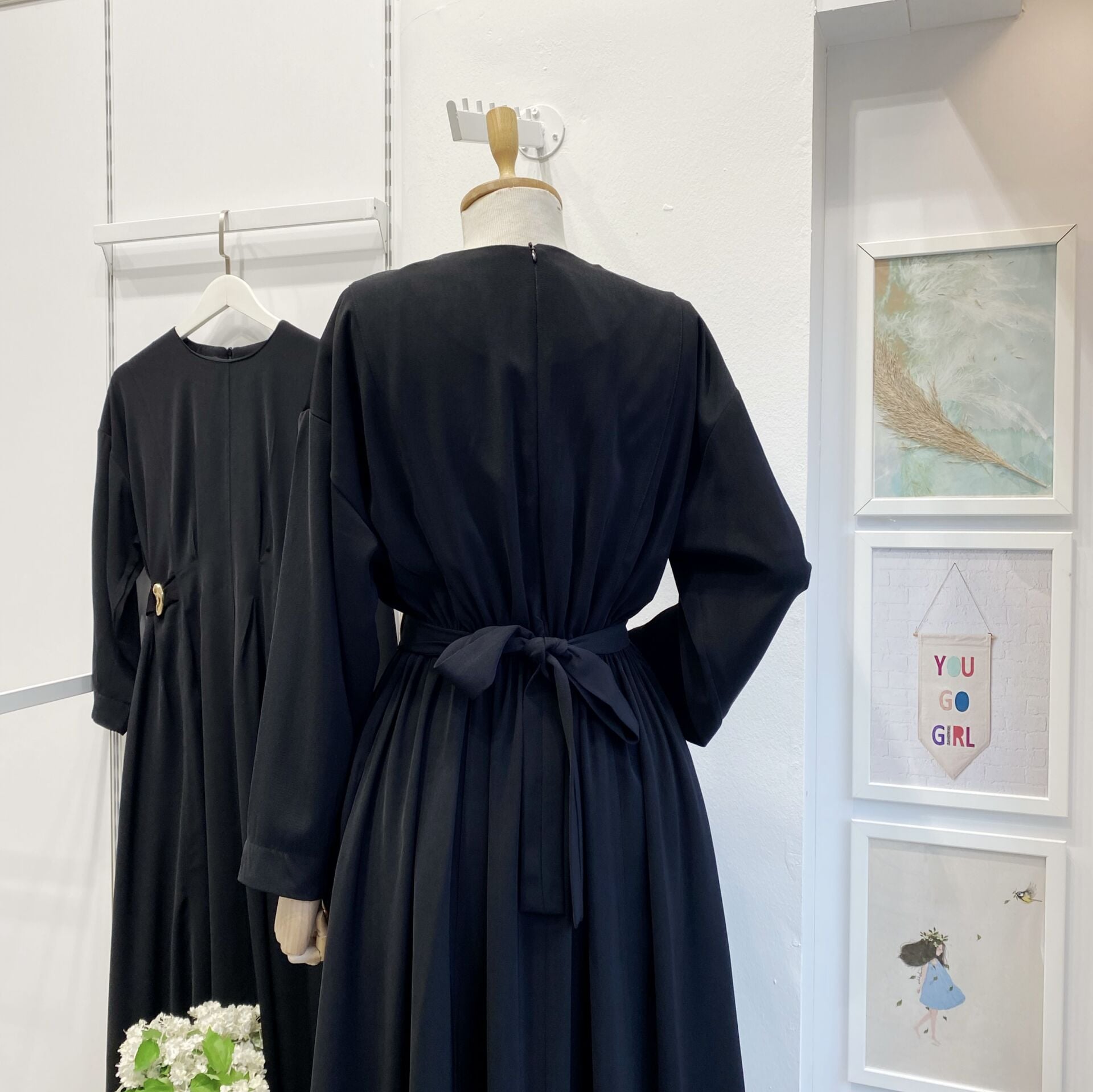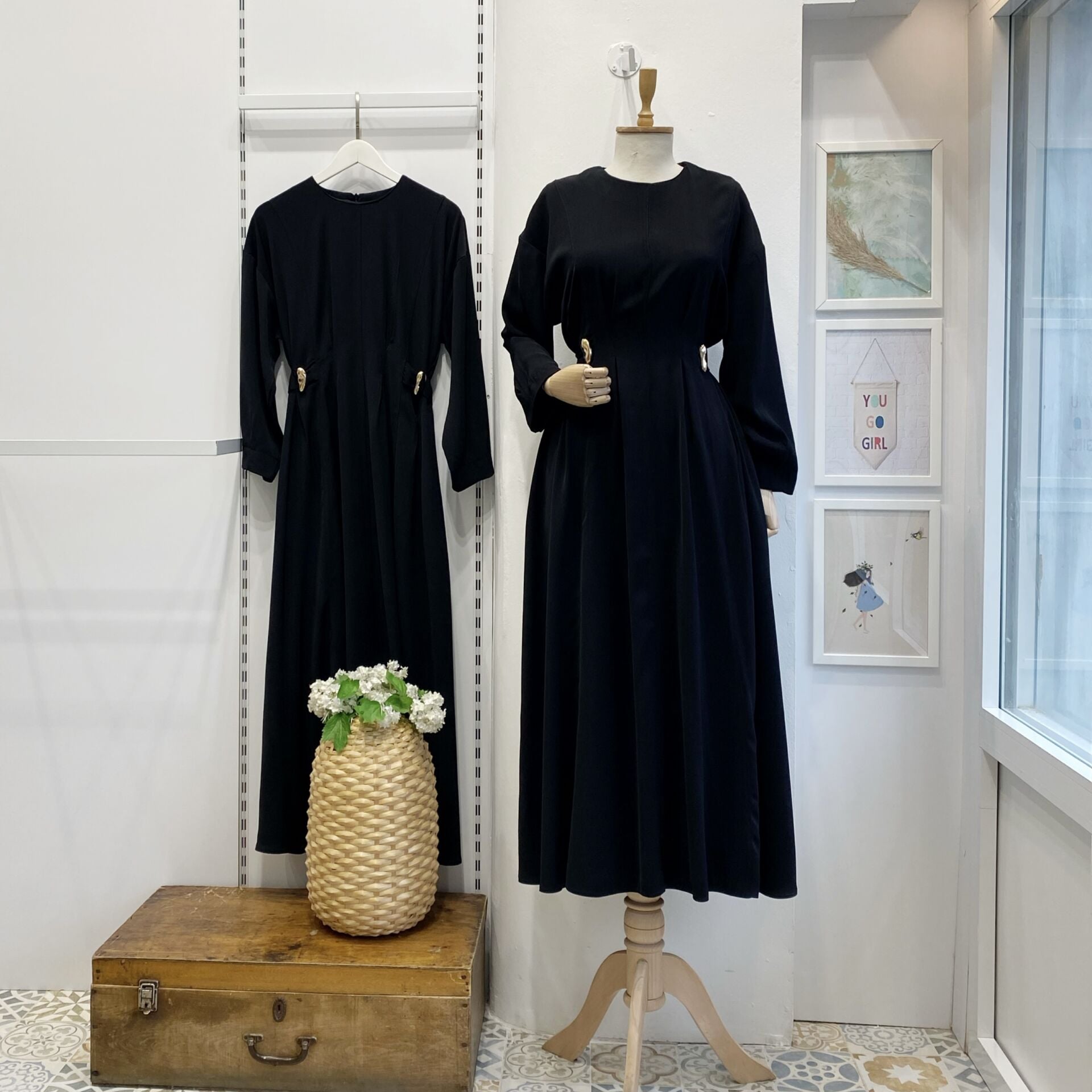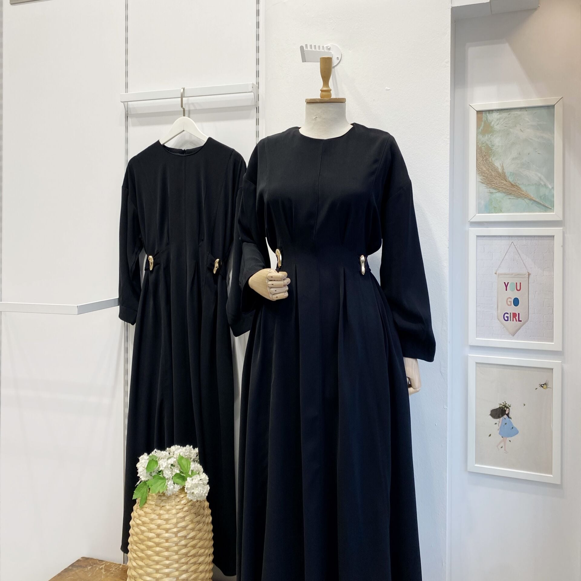 Siyah Modal Kumaş Frise Elbise