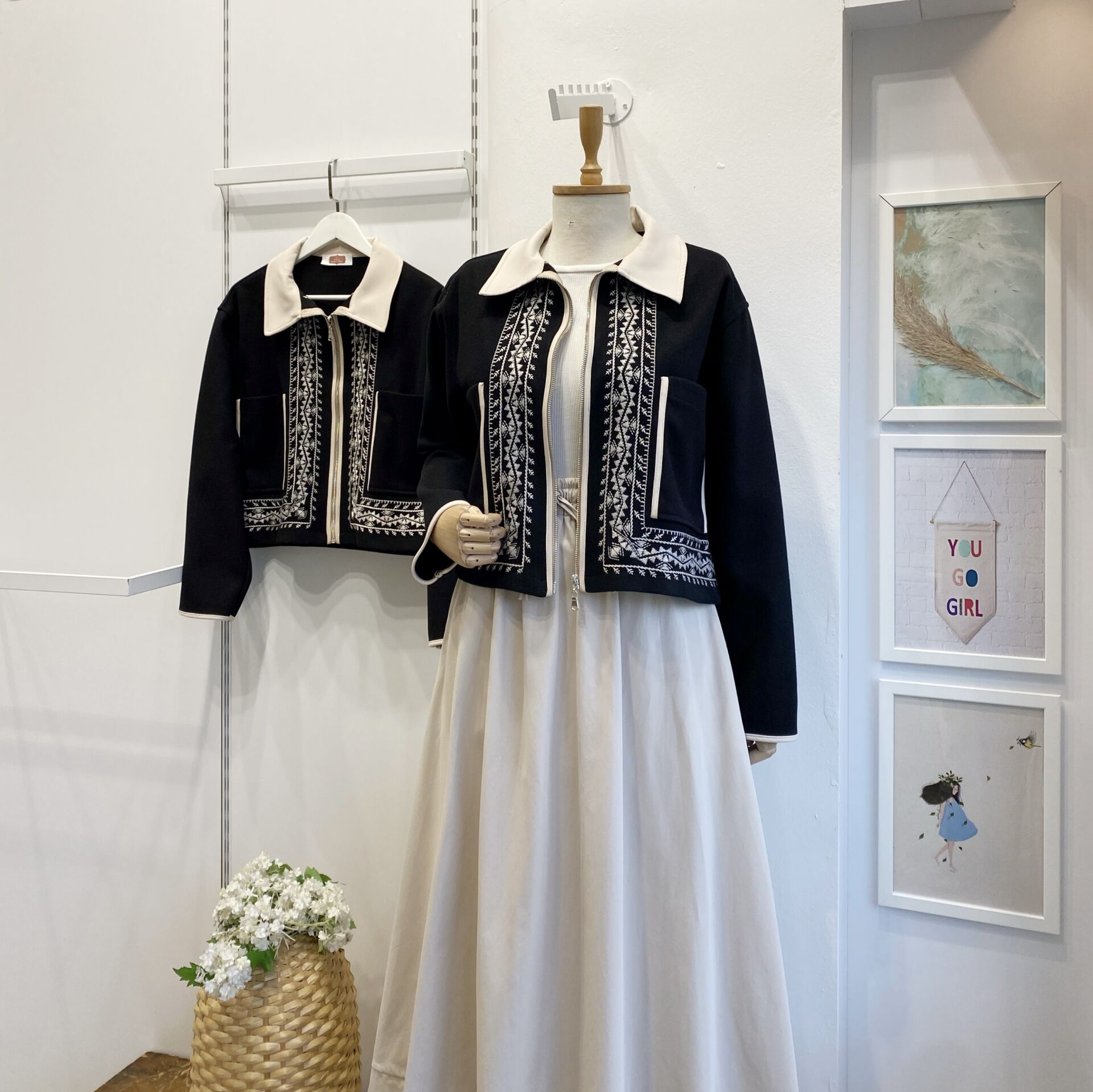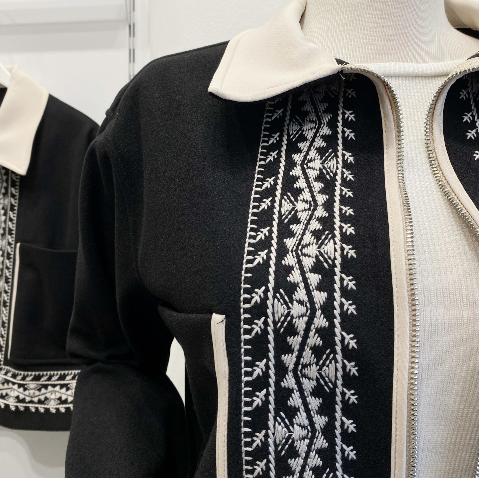 Siyah Nakışlı Kaşe Ceket