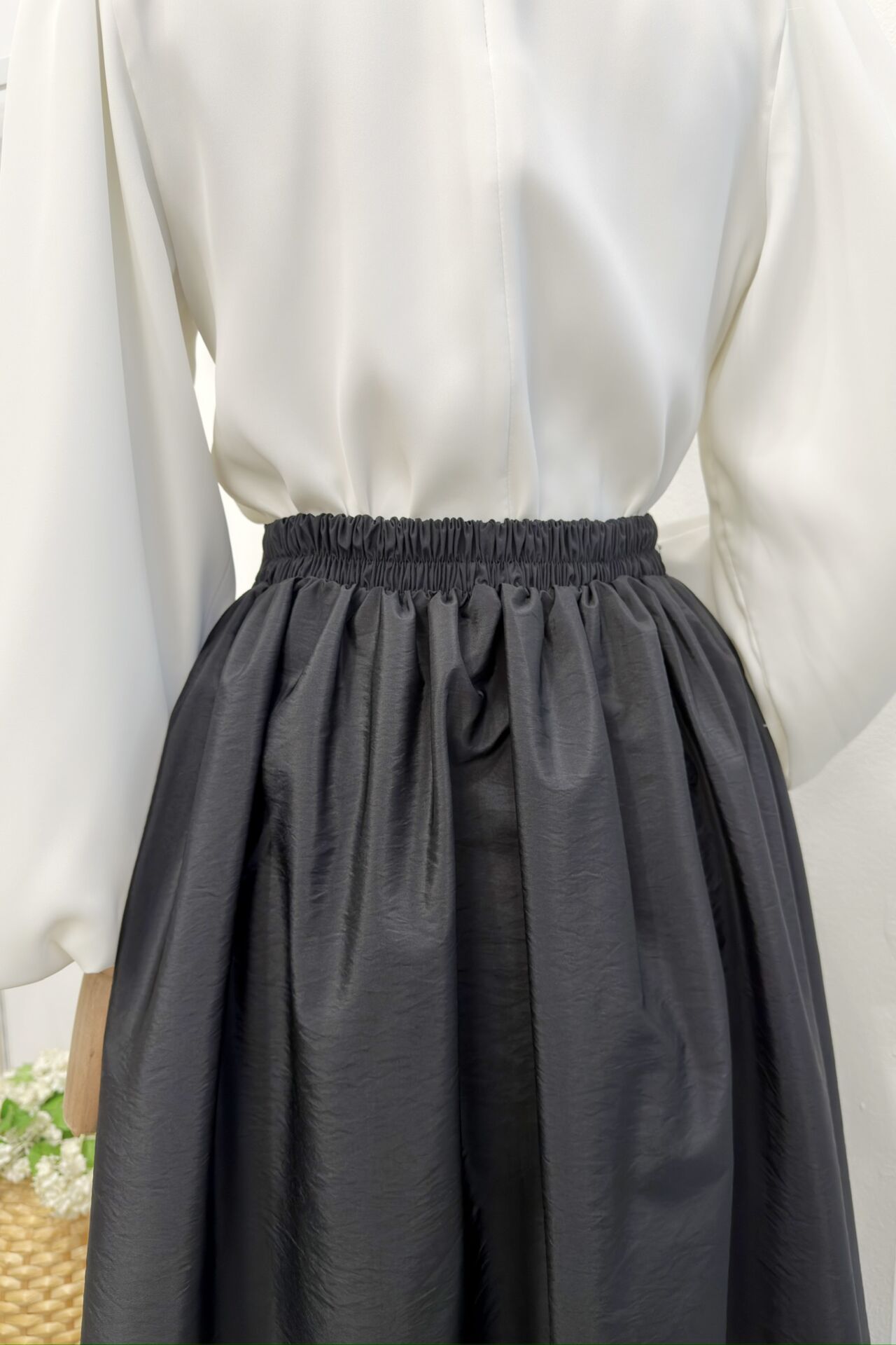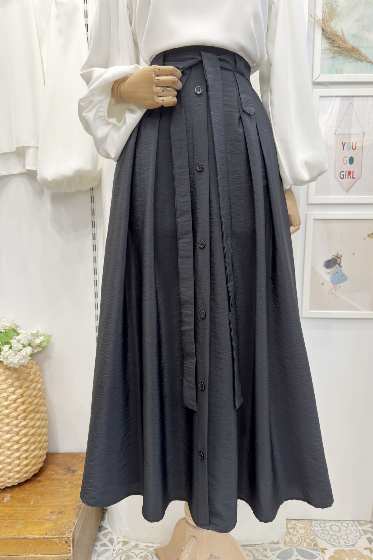Siyah Önü Düğmeli Zirel Etek