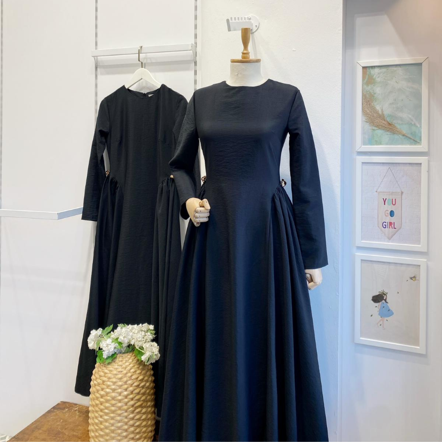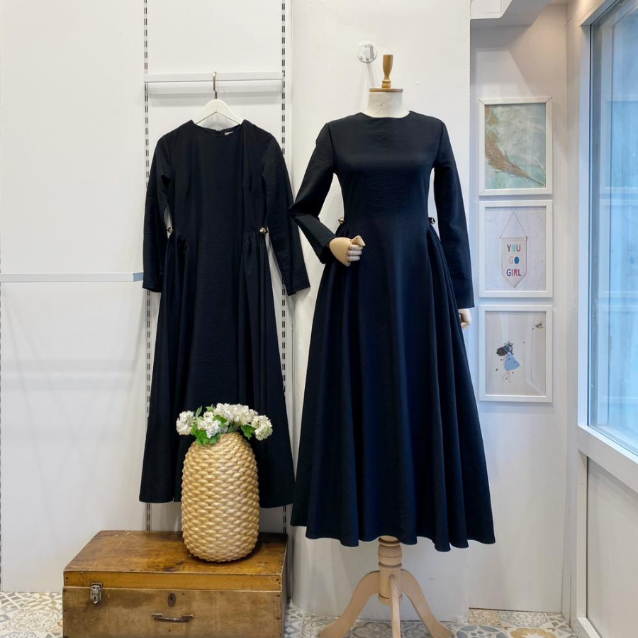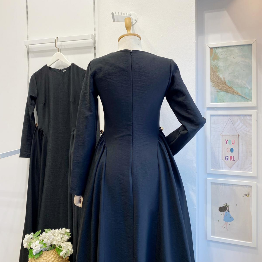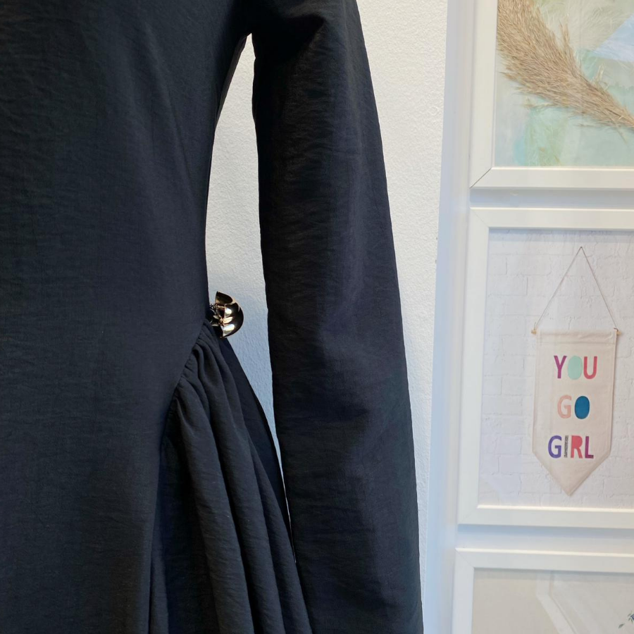 Siyah Paper Touch Bel Detaylı Penelope Elbise