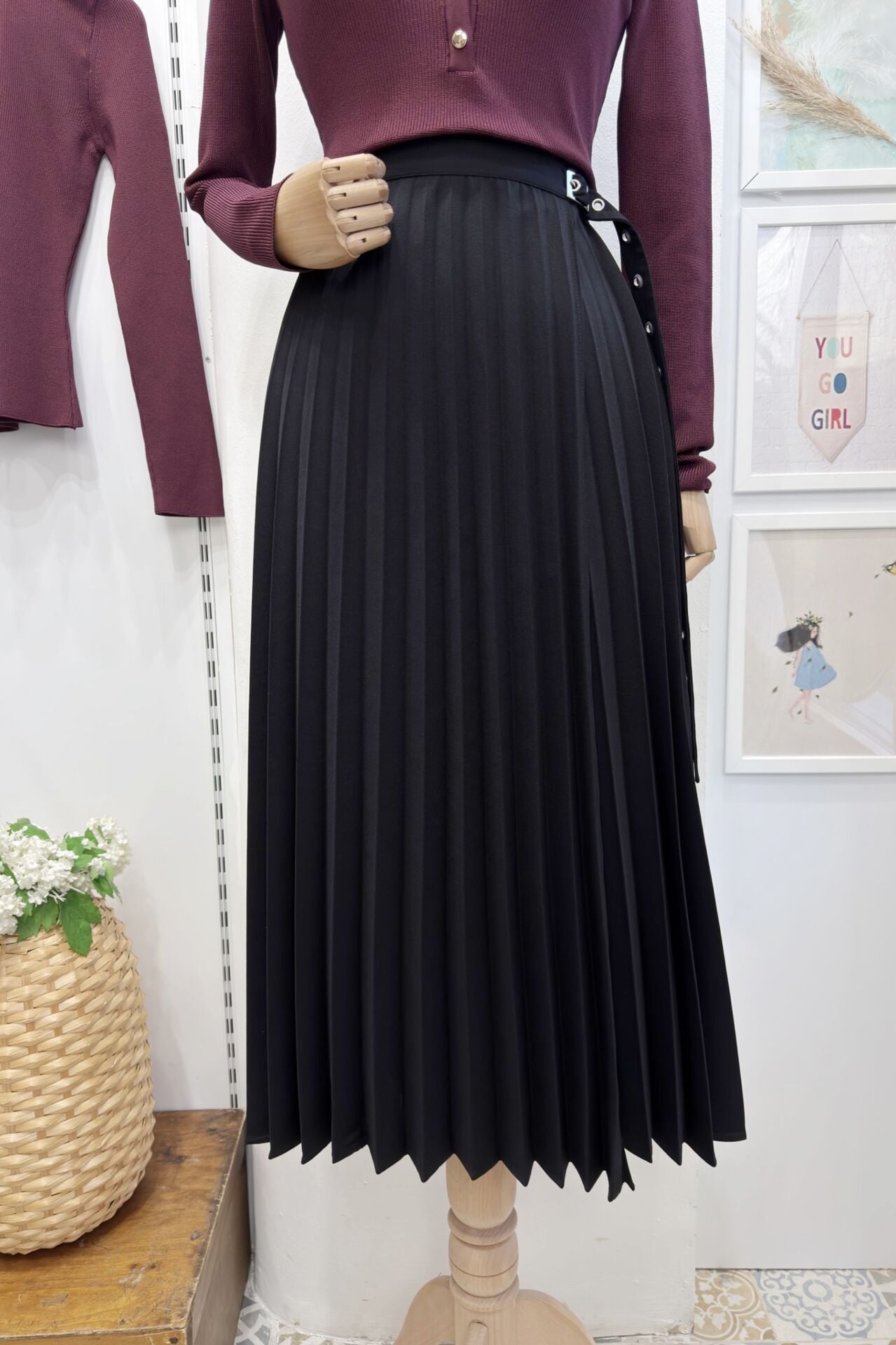 Siyah Piliseli Edith Anvelop Etek