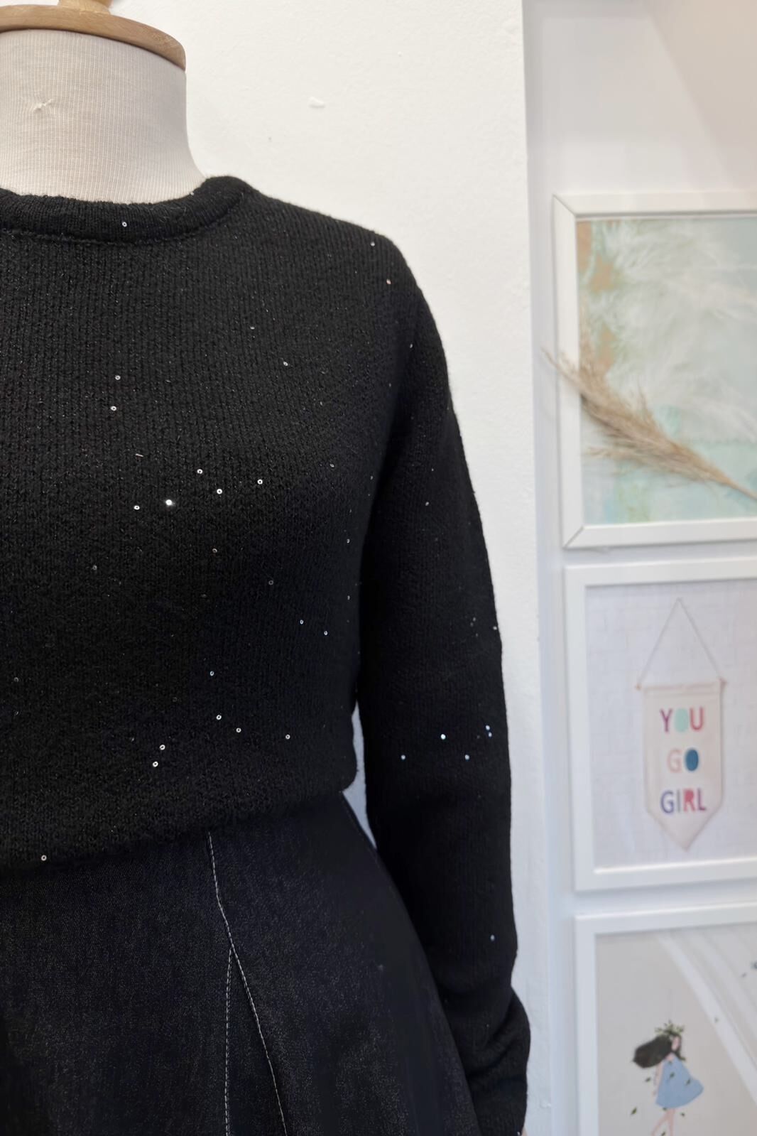 Siyah Sim İpli Triko Kazak