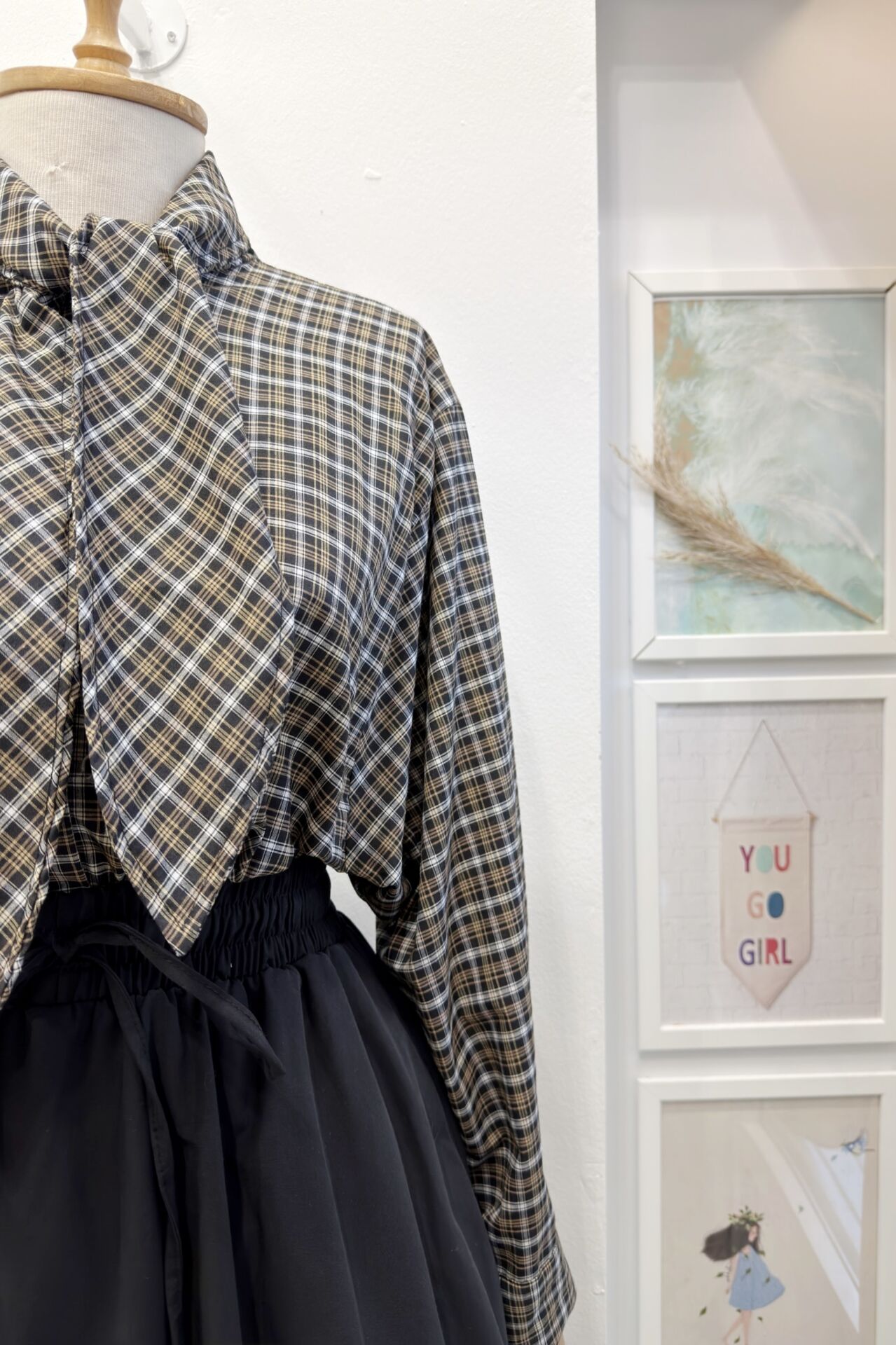 Siyah Vizon Mini Ekose Desenli Viskon Gömlek