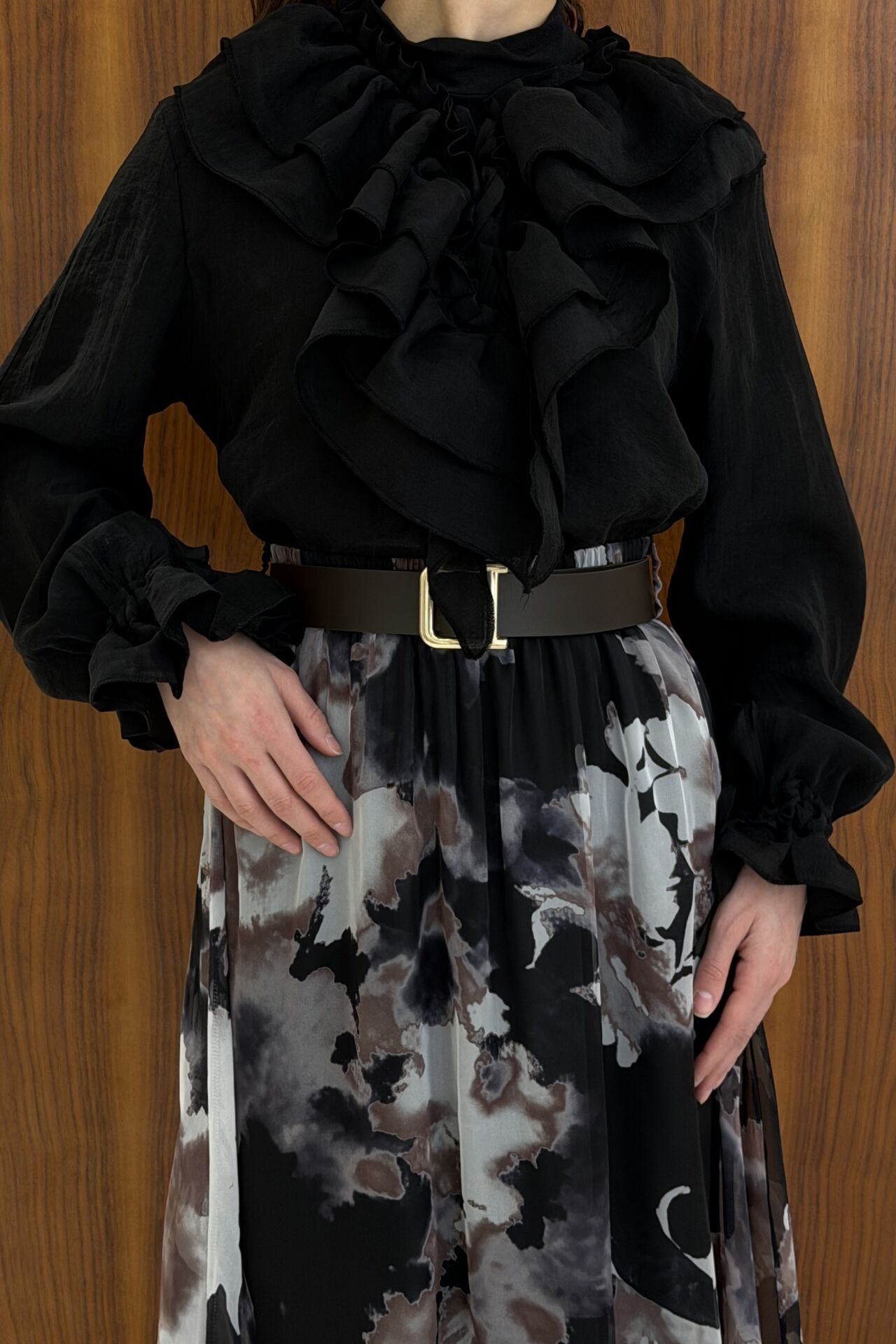 Siyah Volanlı Gömlek Detaylı Mira Takım