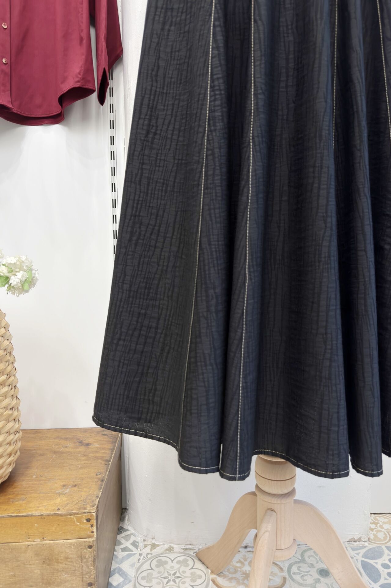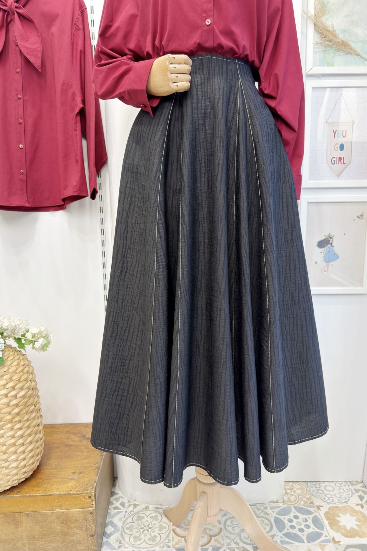 Siyah Yağmur Desenli Viskon Etek