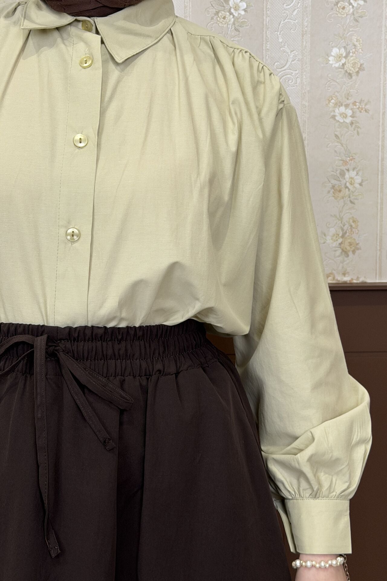 Su Yeşili Omzu Pileli Poplin Gömlek
