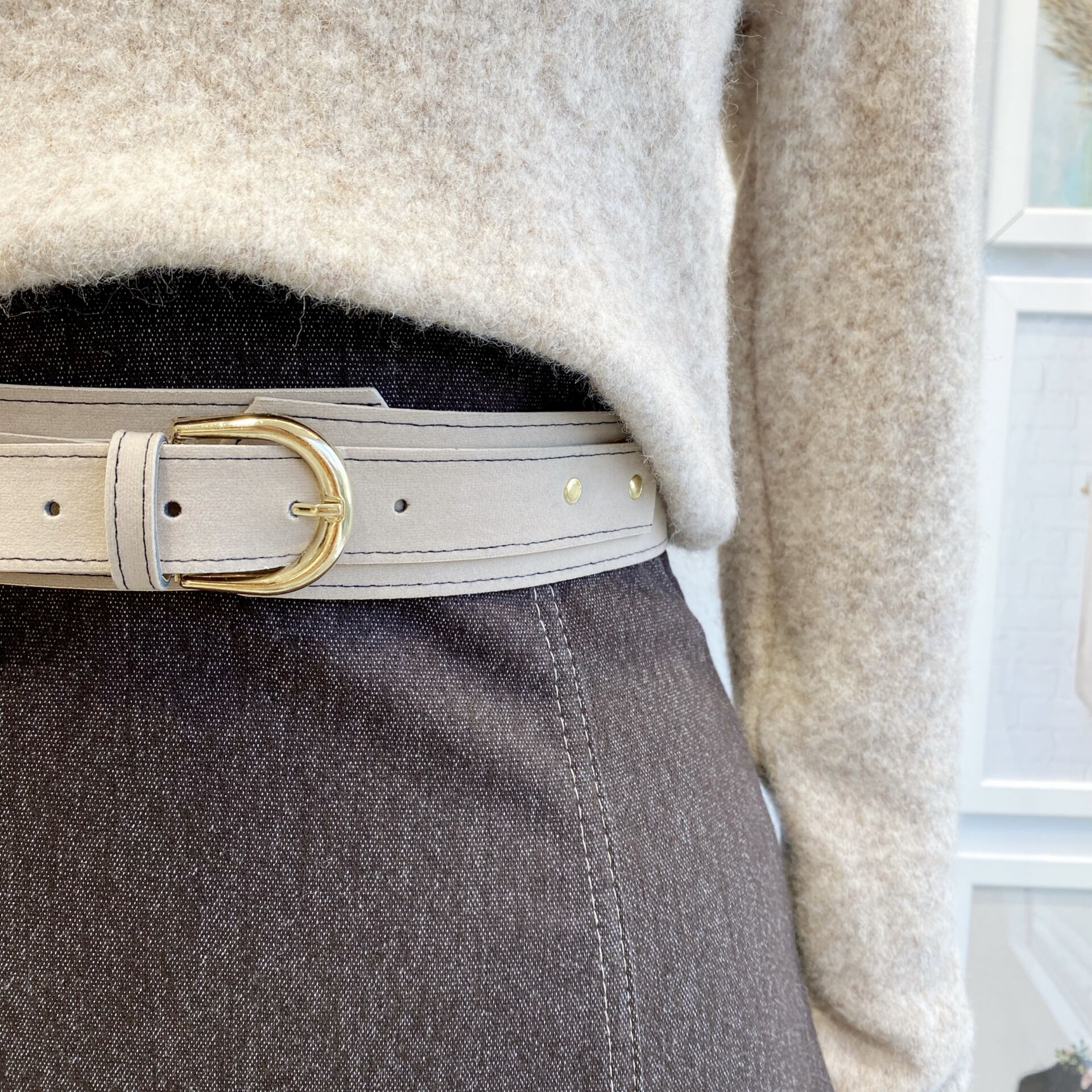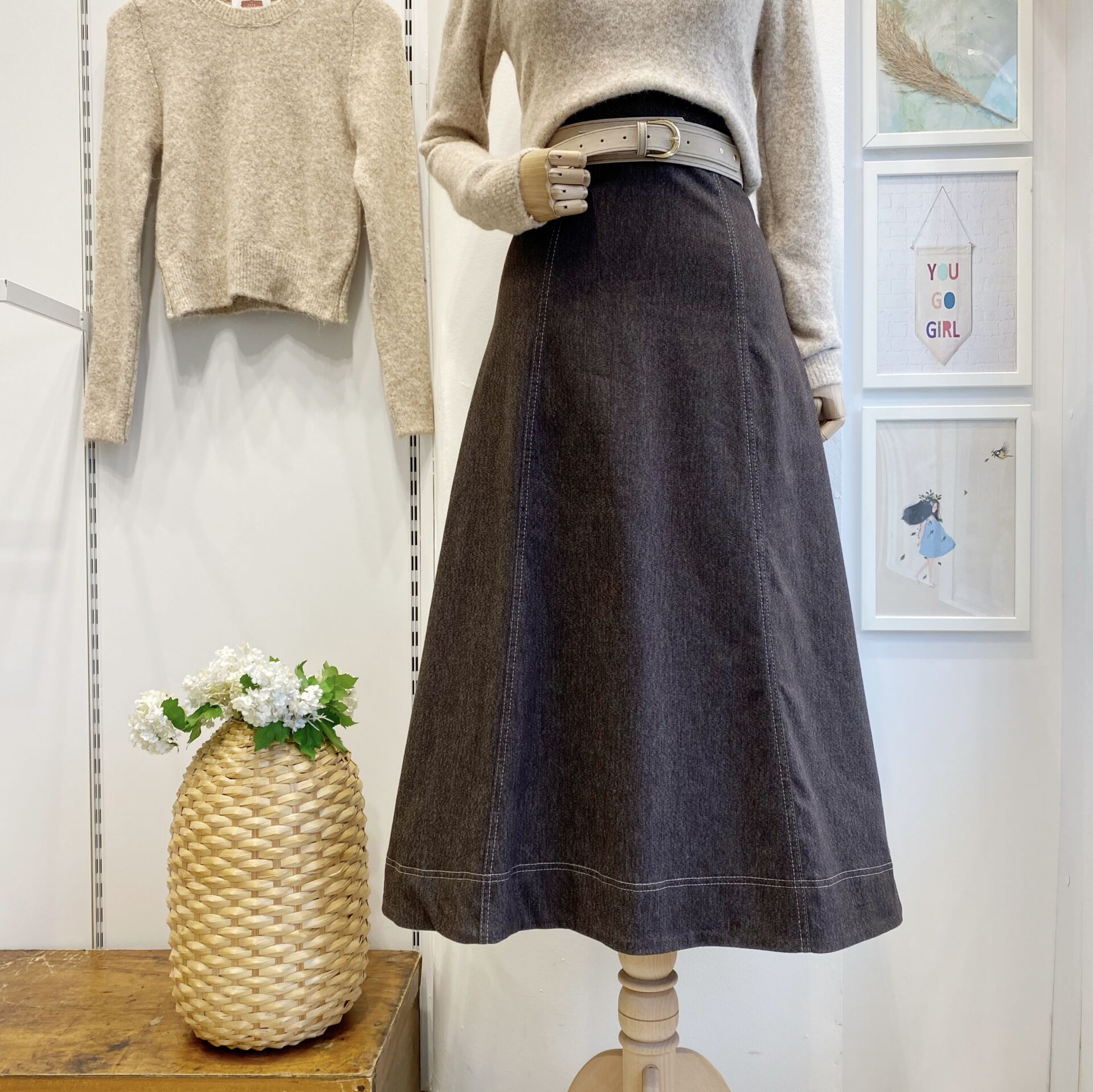 Süet Kemer Detaylı Kahverengi Perline Kot Etek