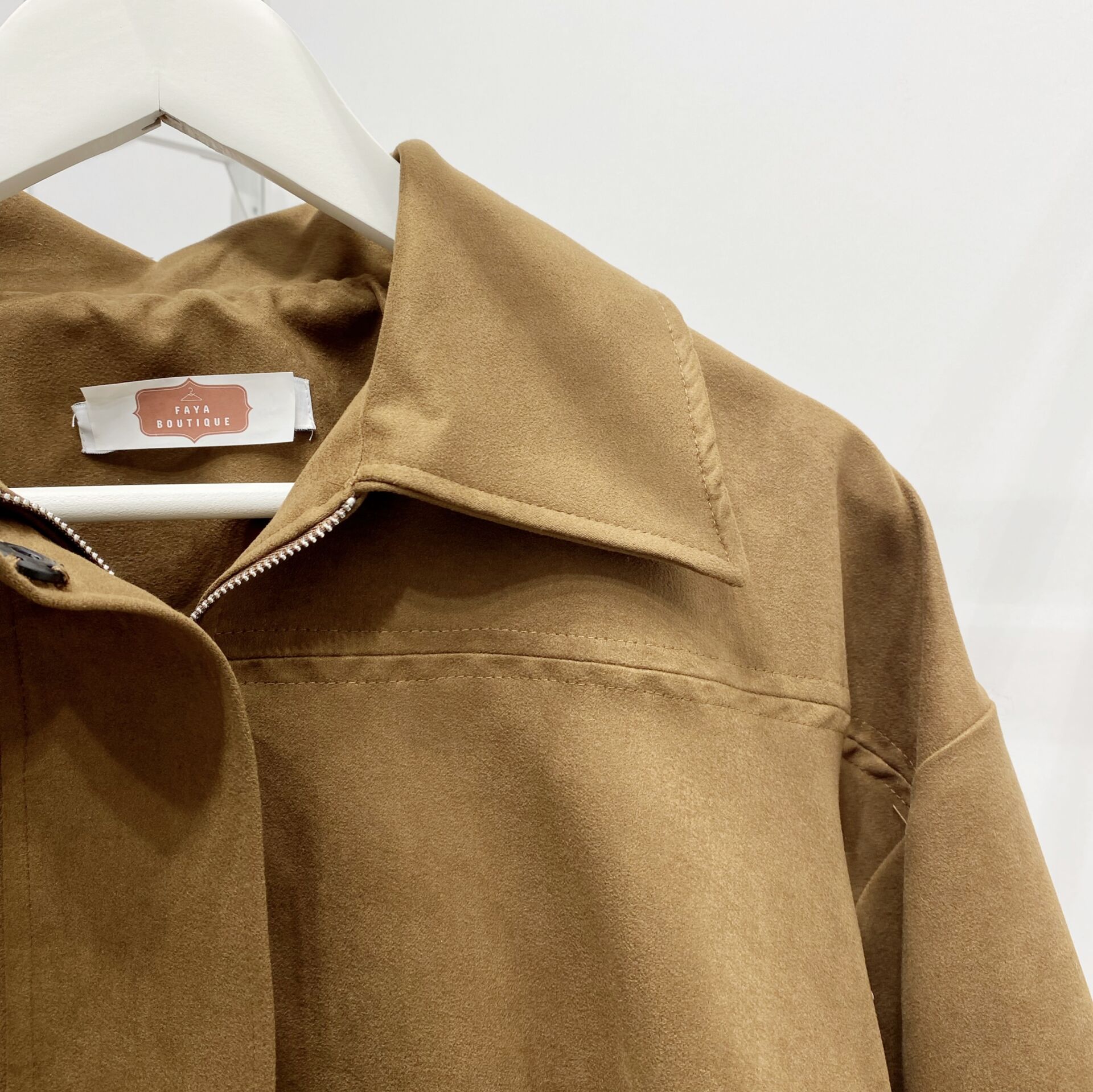 Taba Fular Detaylı Süet Bomber Ceket