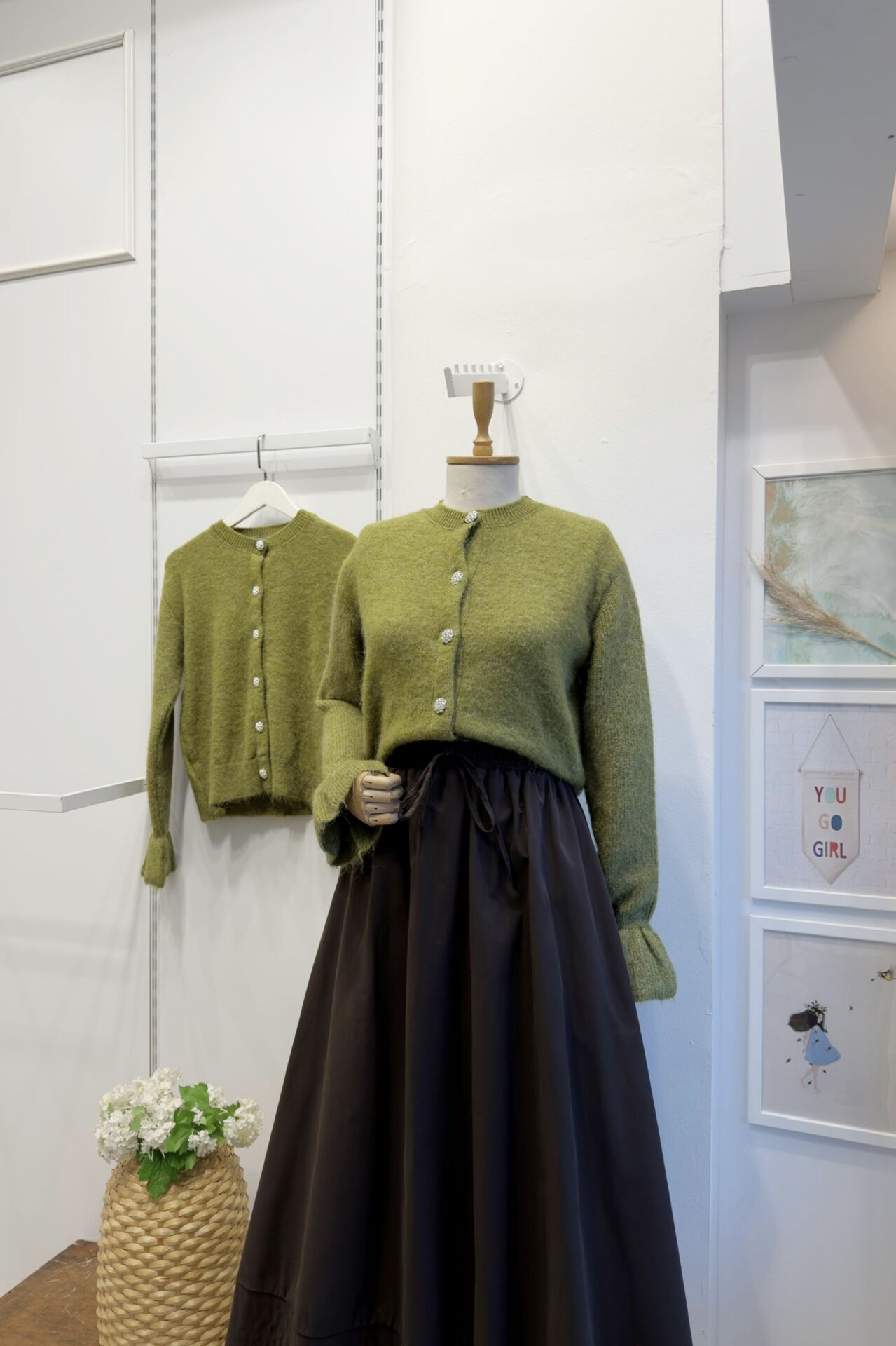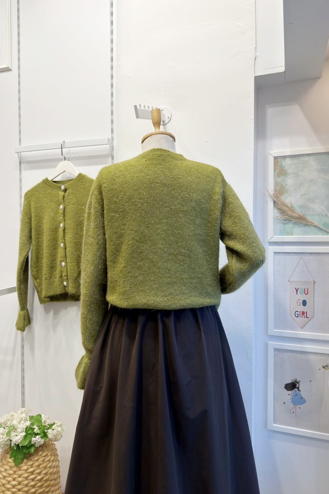 Taş Düğmeli Yağ Yeşili Diamond Hırka