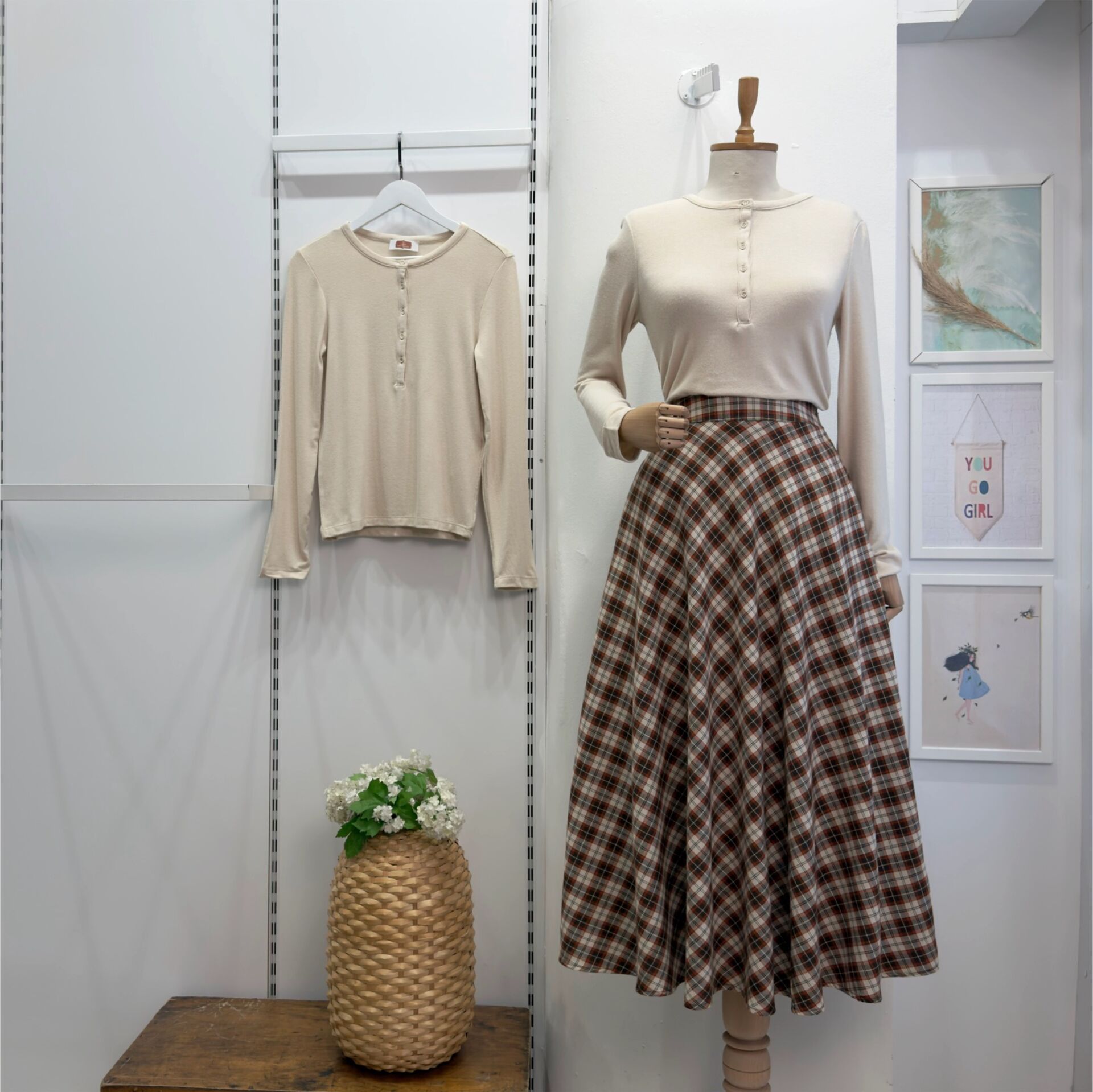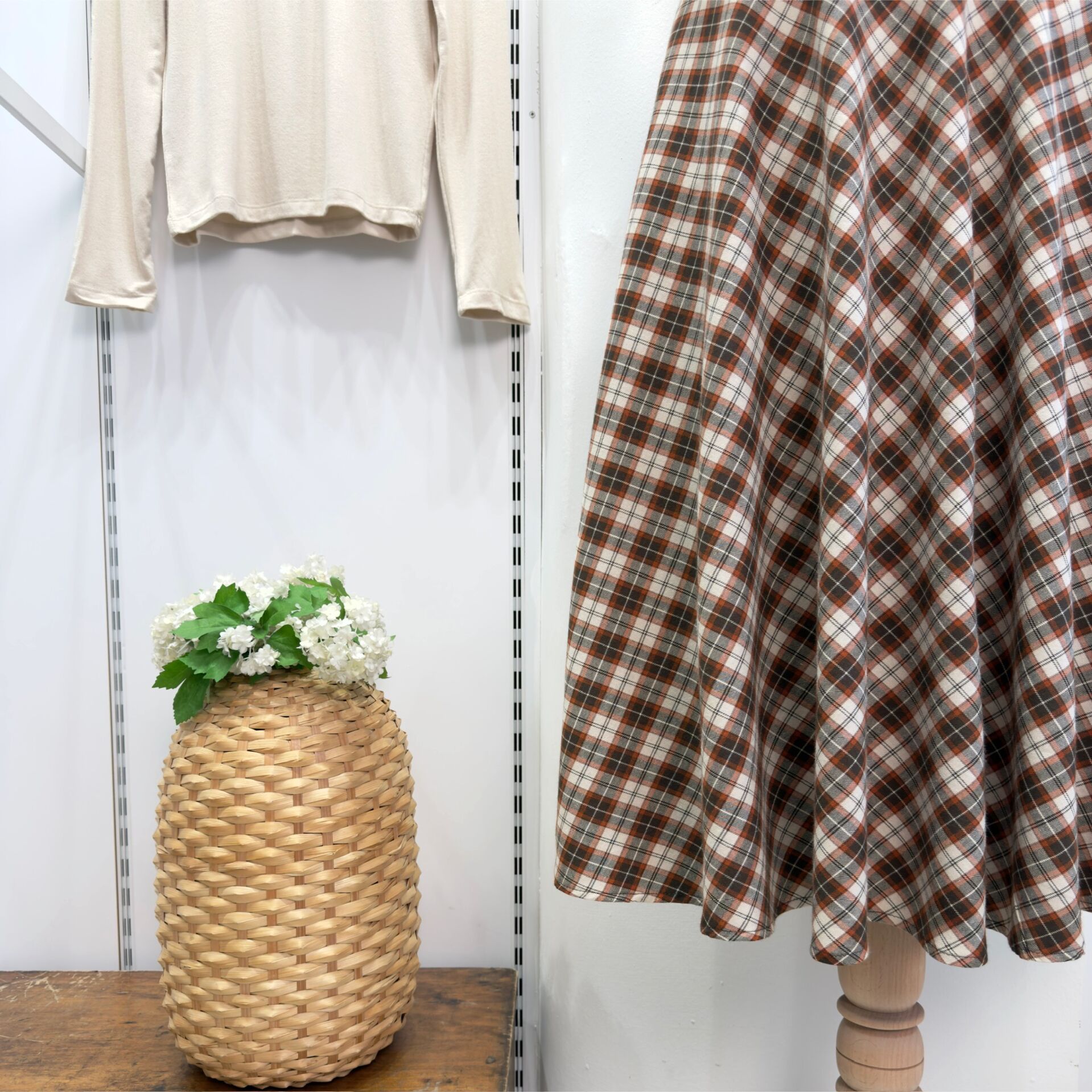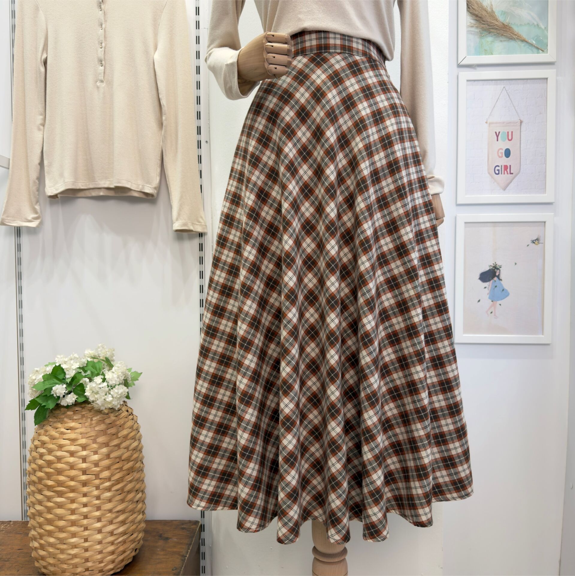 Turuncu Jesen Kloş Model Ekoseli Etek