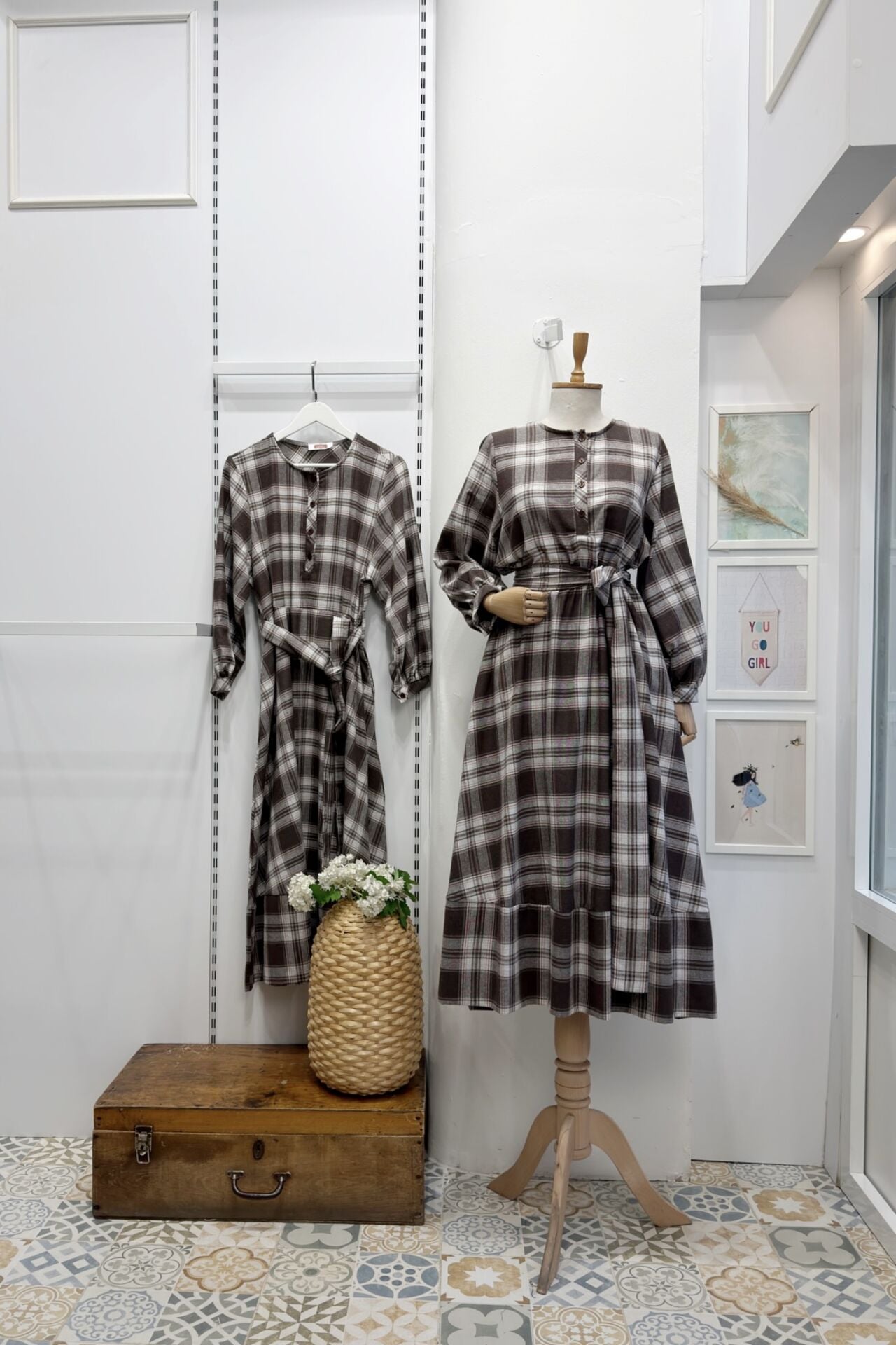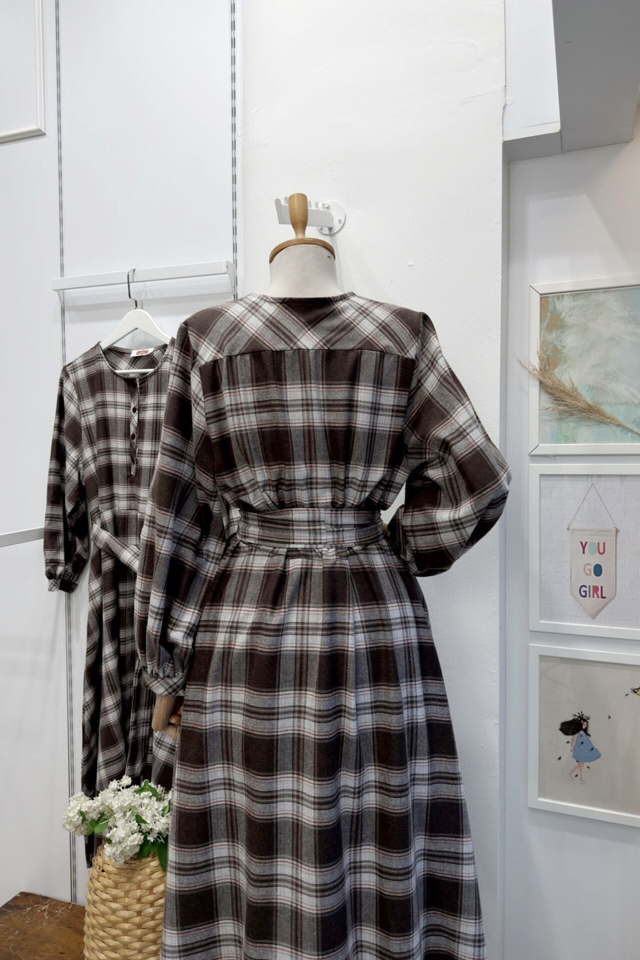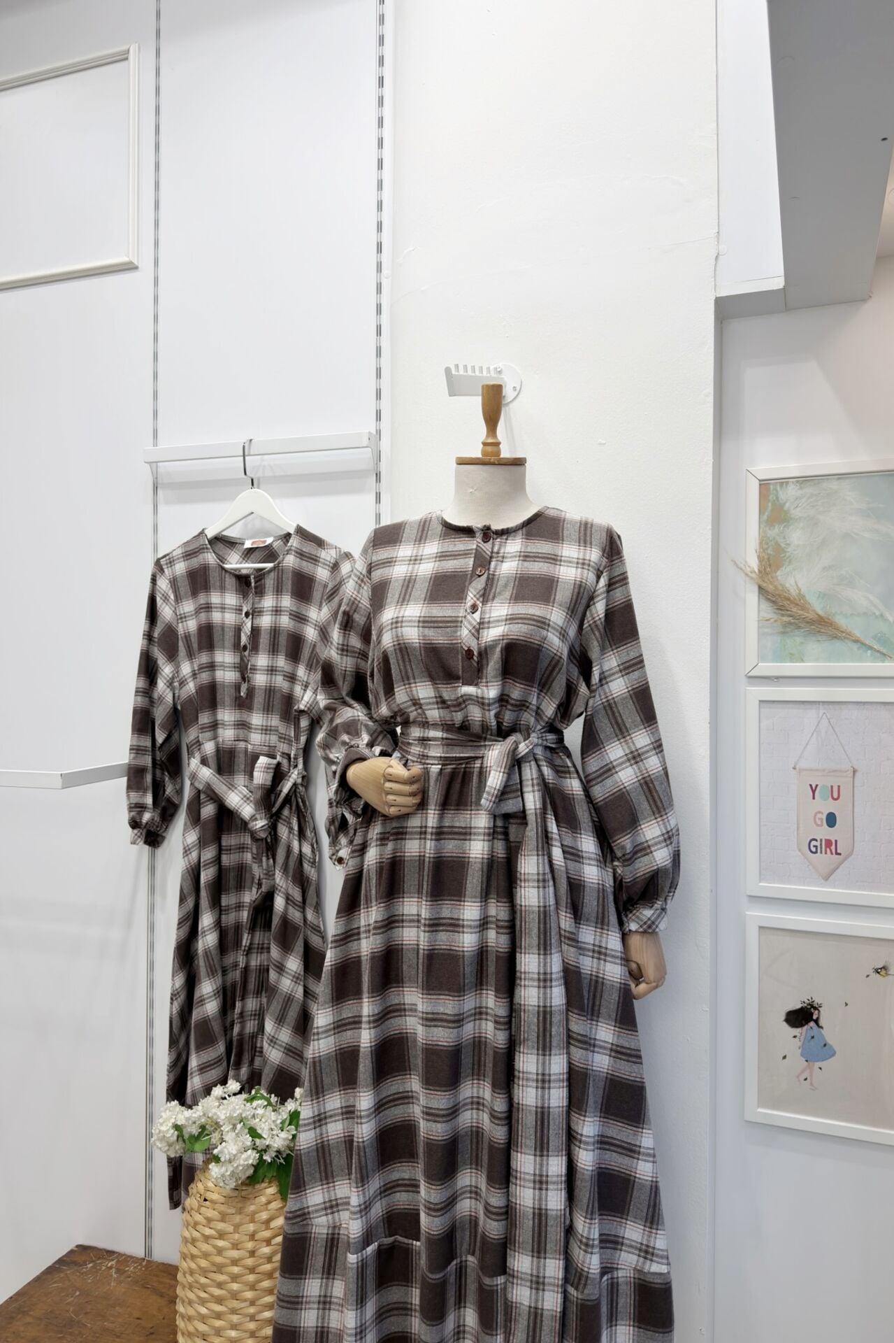 Turuncu Kahverengi Ekoseli Sweety Elbise