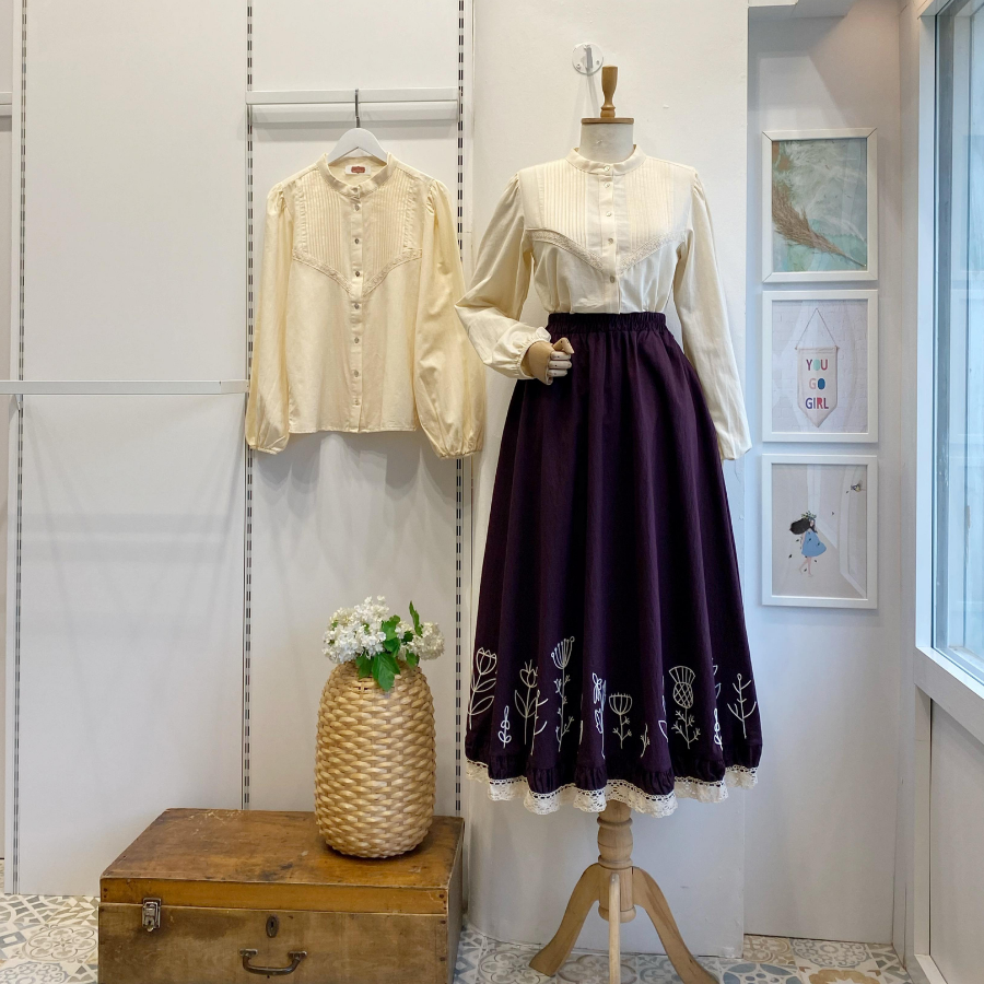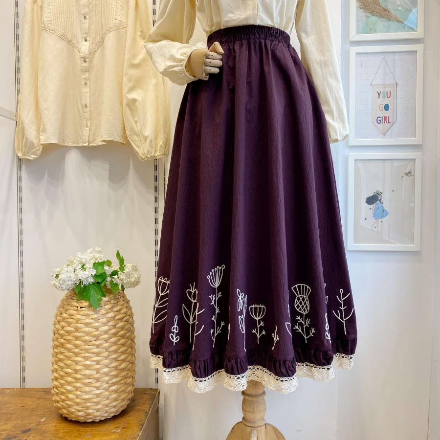 Ucu Nakışlı Mürdüm Paper Touch Etek