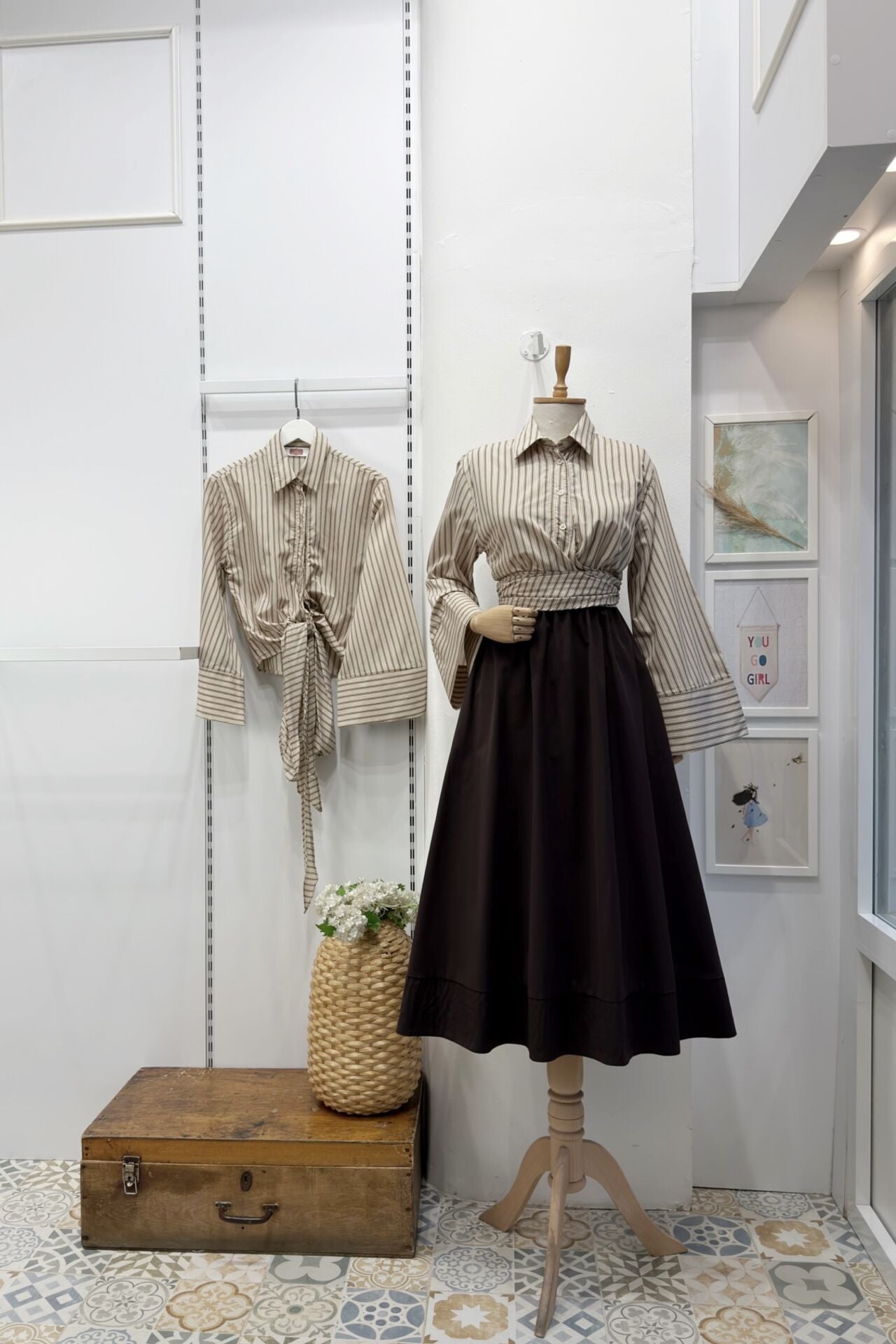 Vizon Çizgili Bağlamalı Gömlek