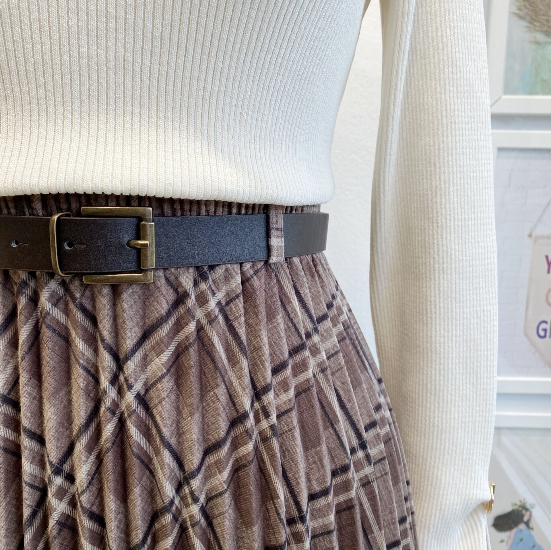 Vizon Ekose Desenli Kemer Detaylı Cillian Etek