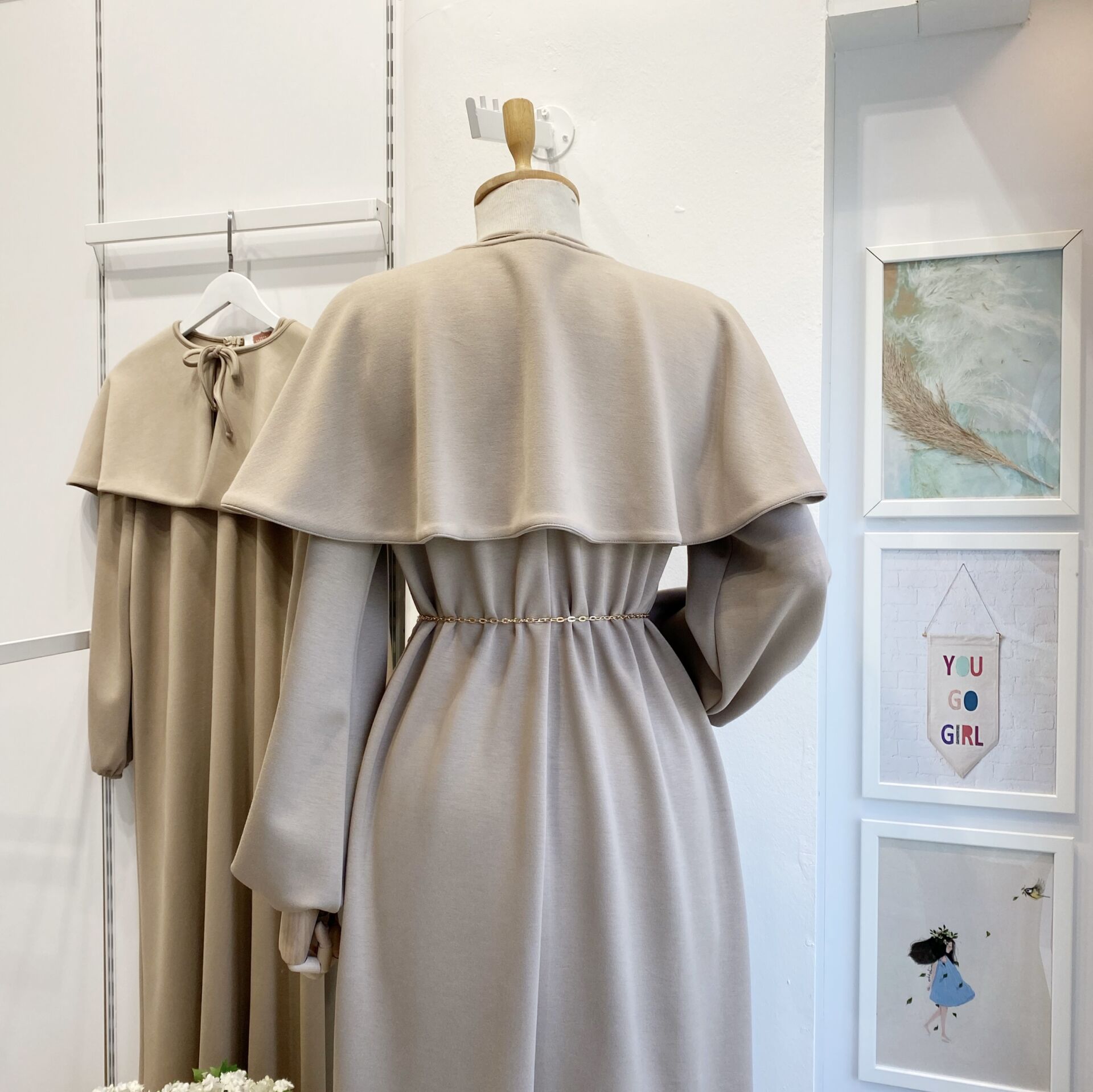 Vizon Pelerin Eklemeli Osyho Kumaş Elbise