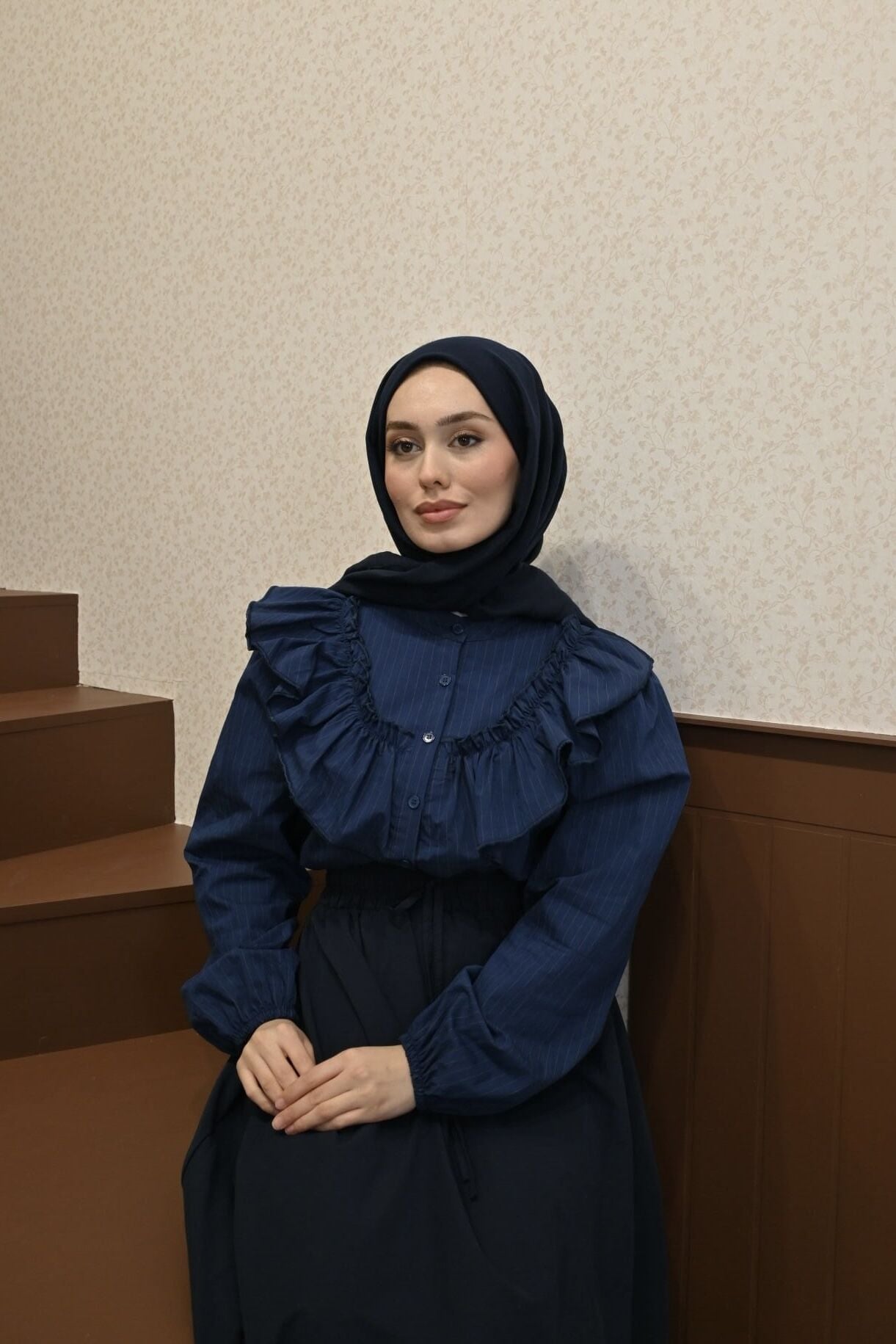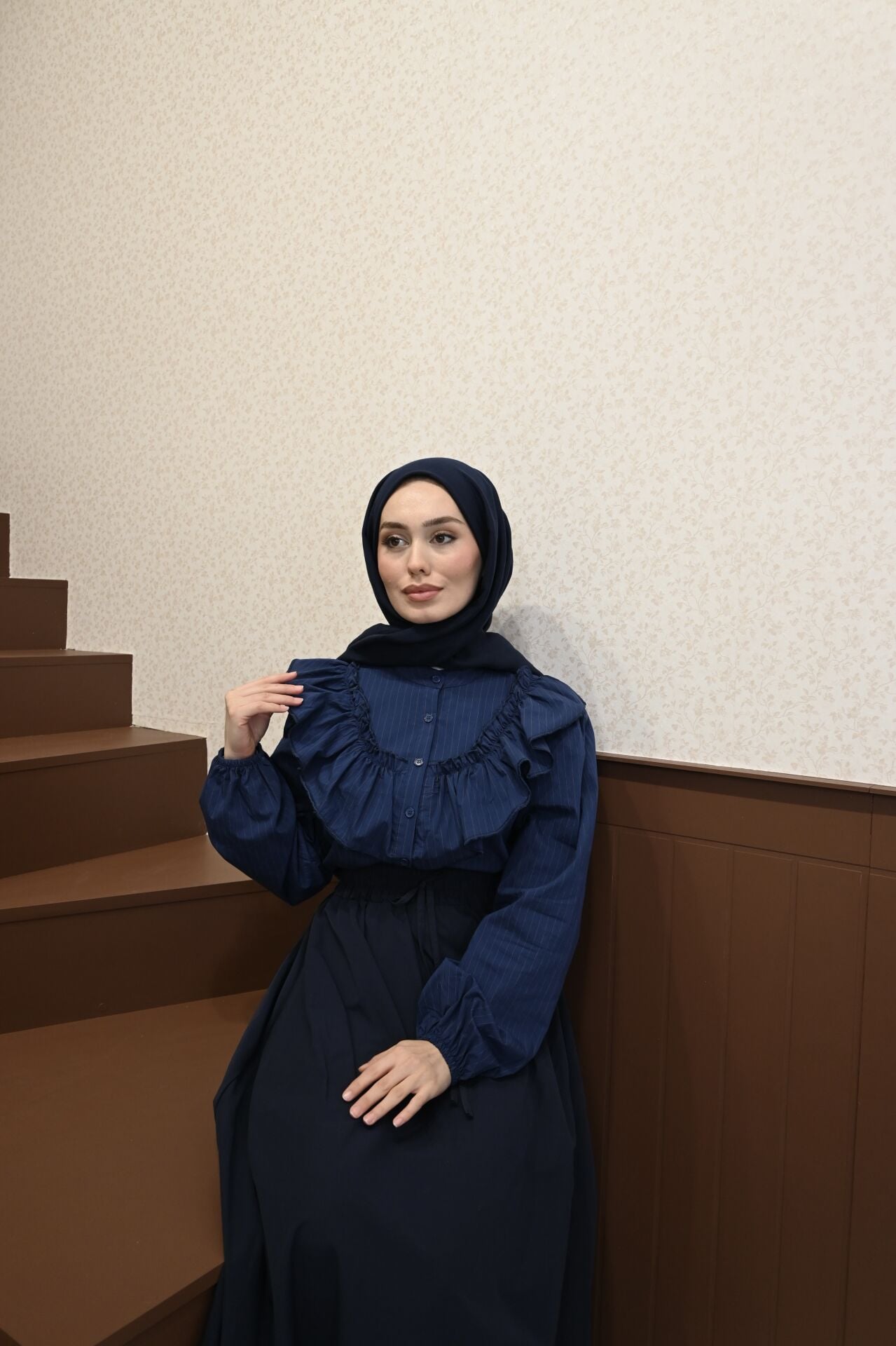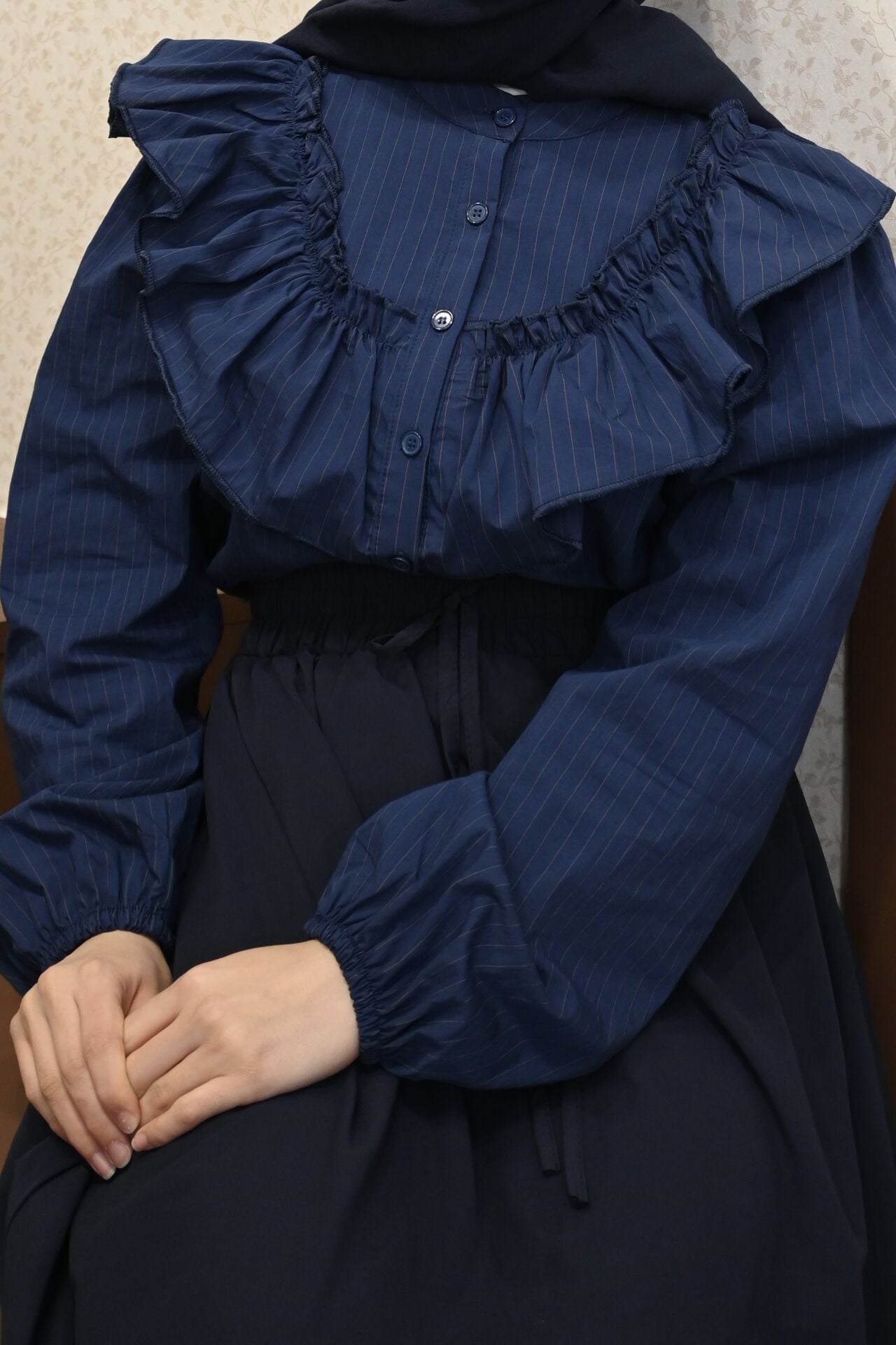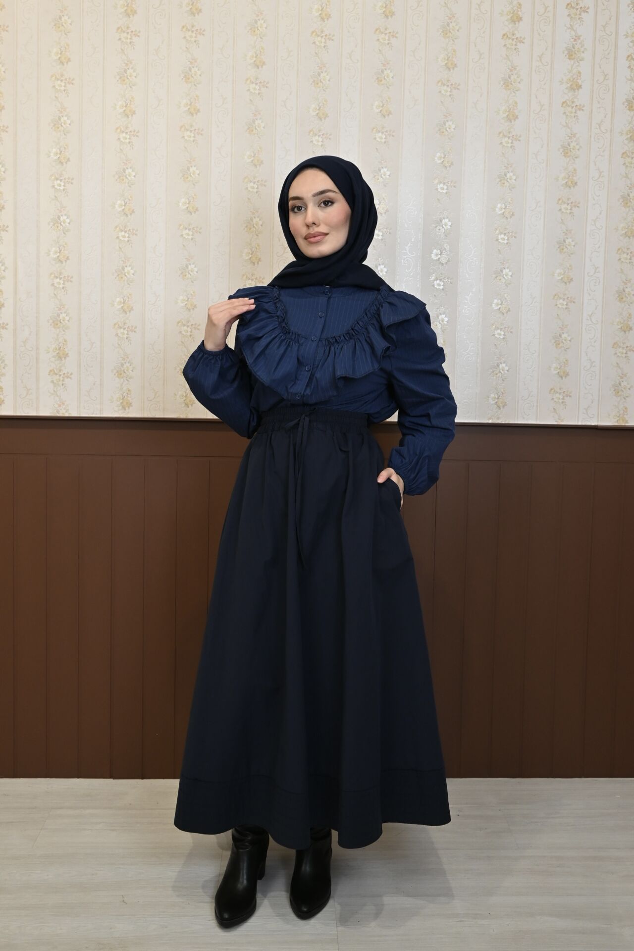 Volanlı Lacivert Gömlek
