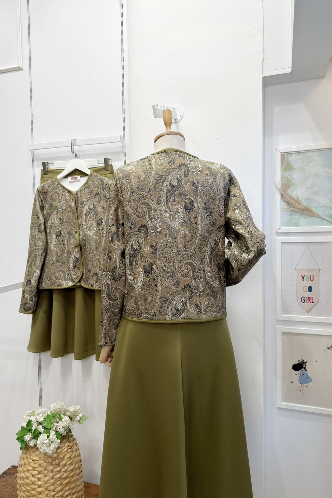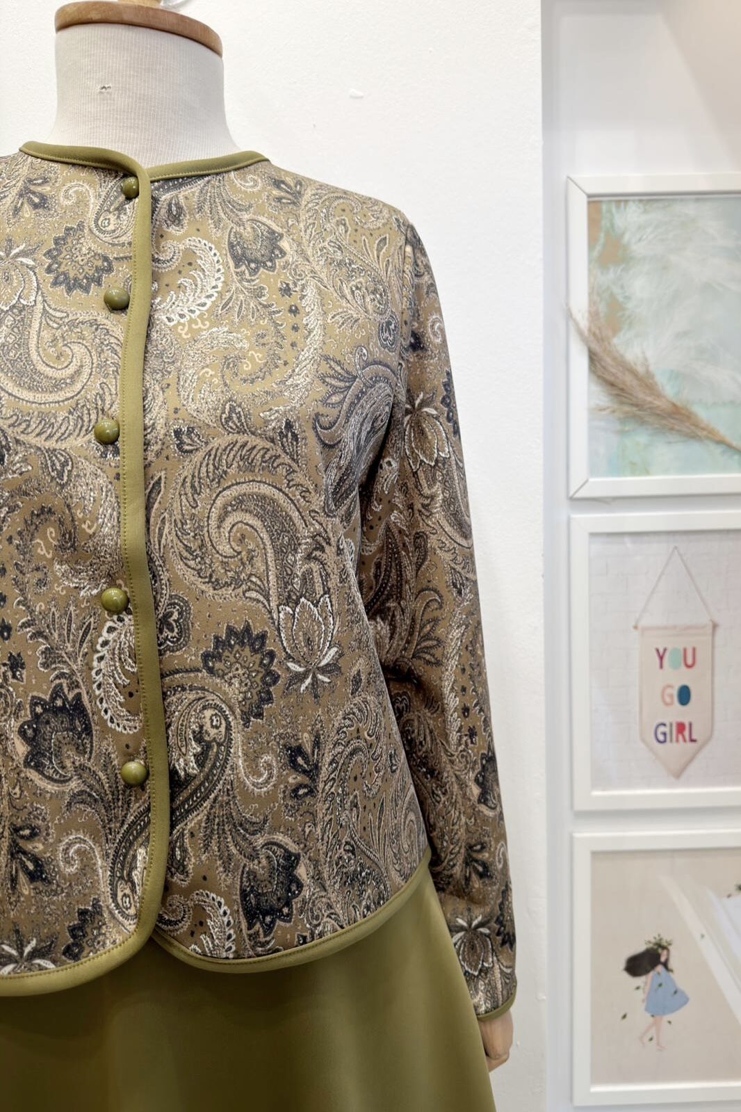 Yağ Yeşili Etnik Desenli Scuba Takım