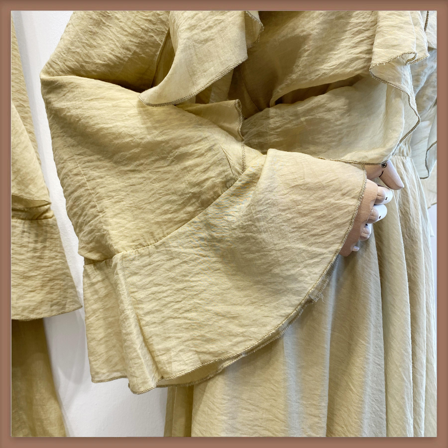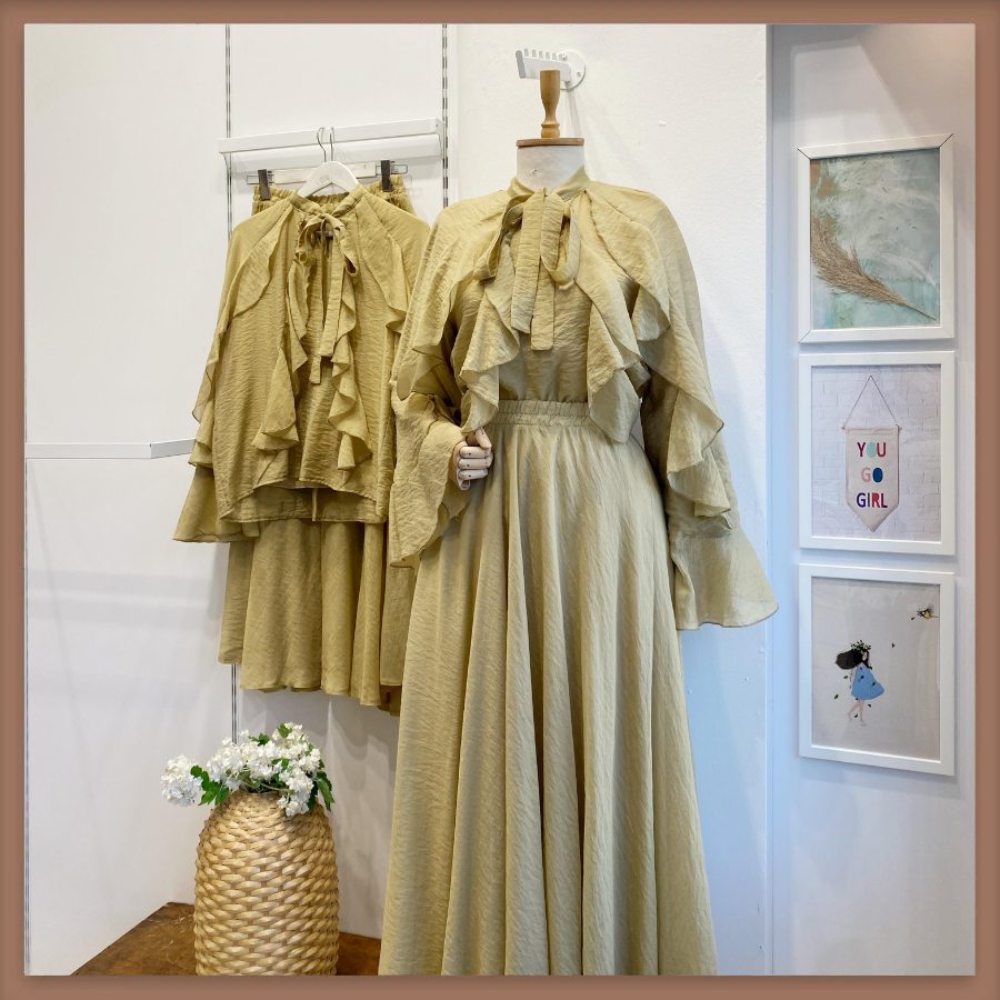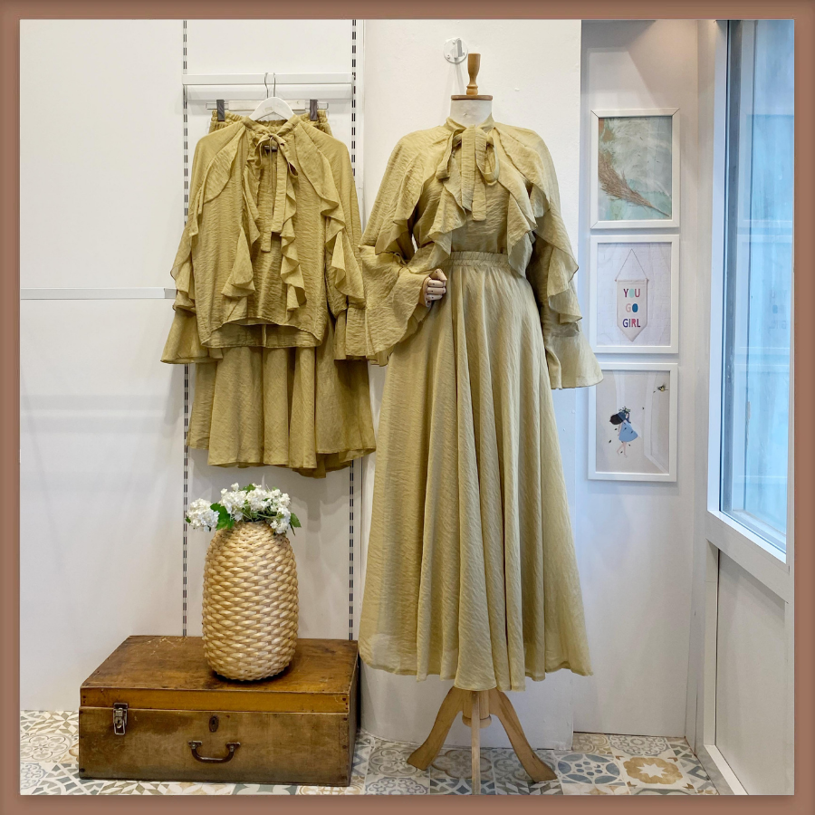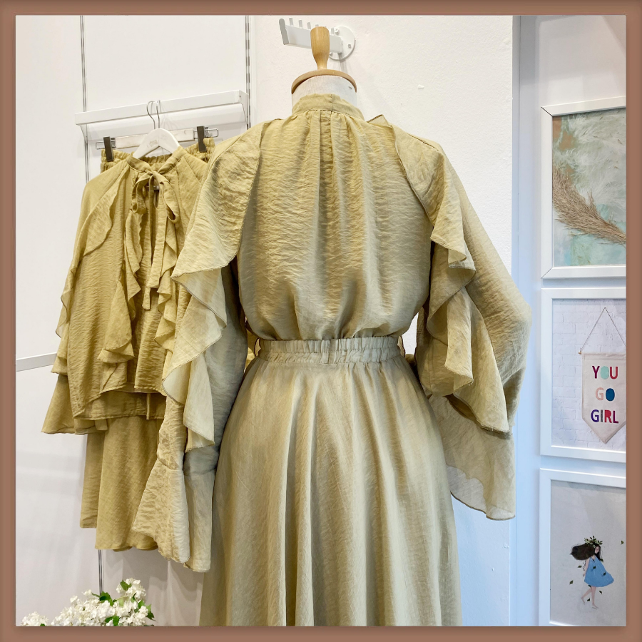 Yağ Yeşili İspanyol Kol Mimosa Şifon Takım