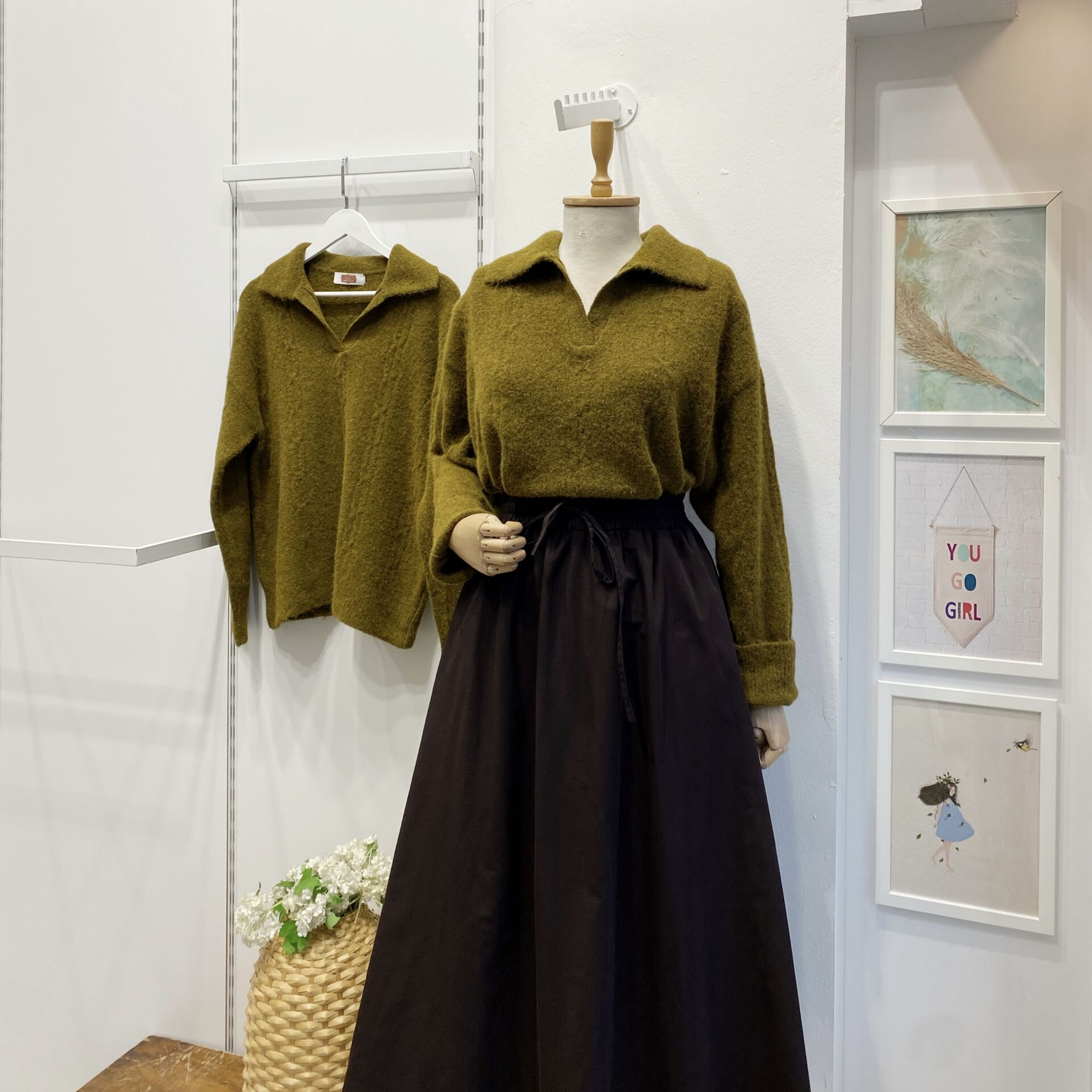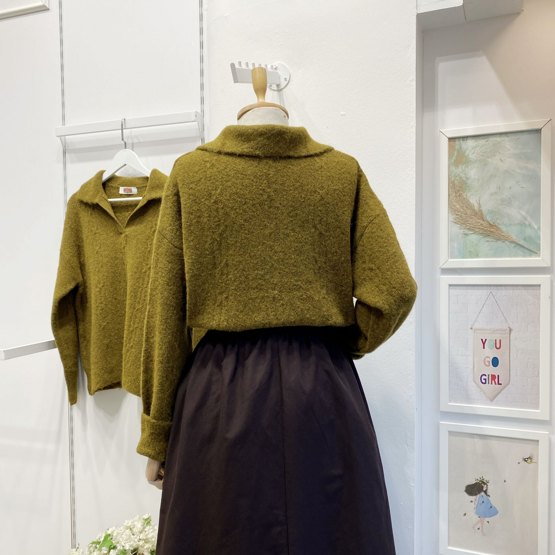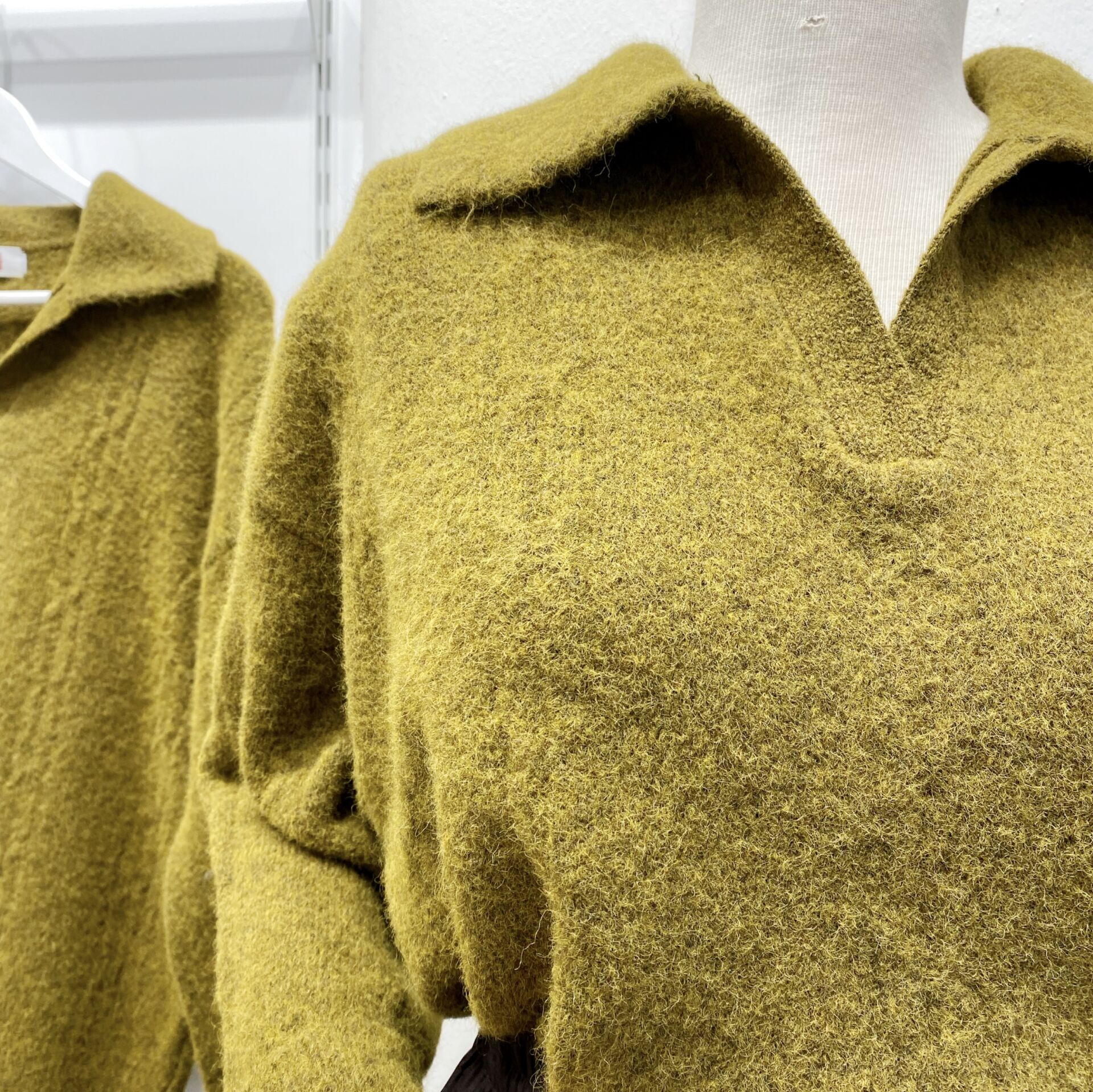 Yağ Yeşili Polo Yaka Saç Örgülü Kazak