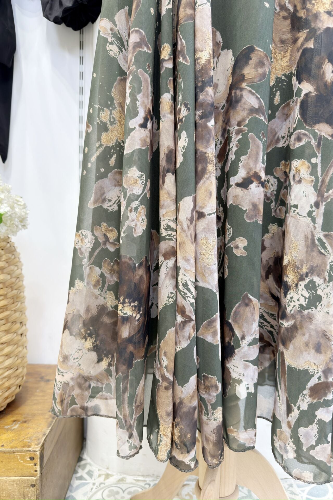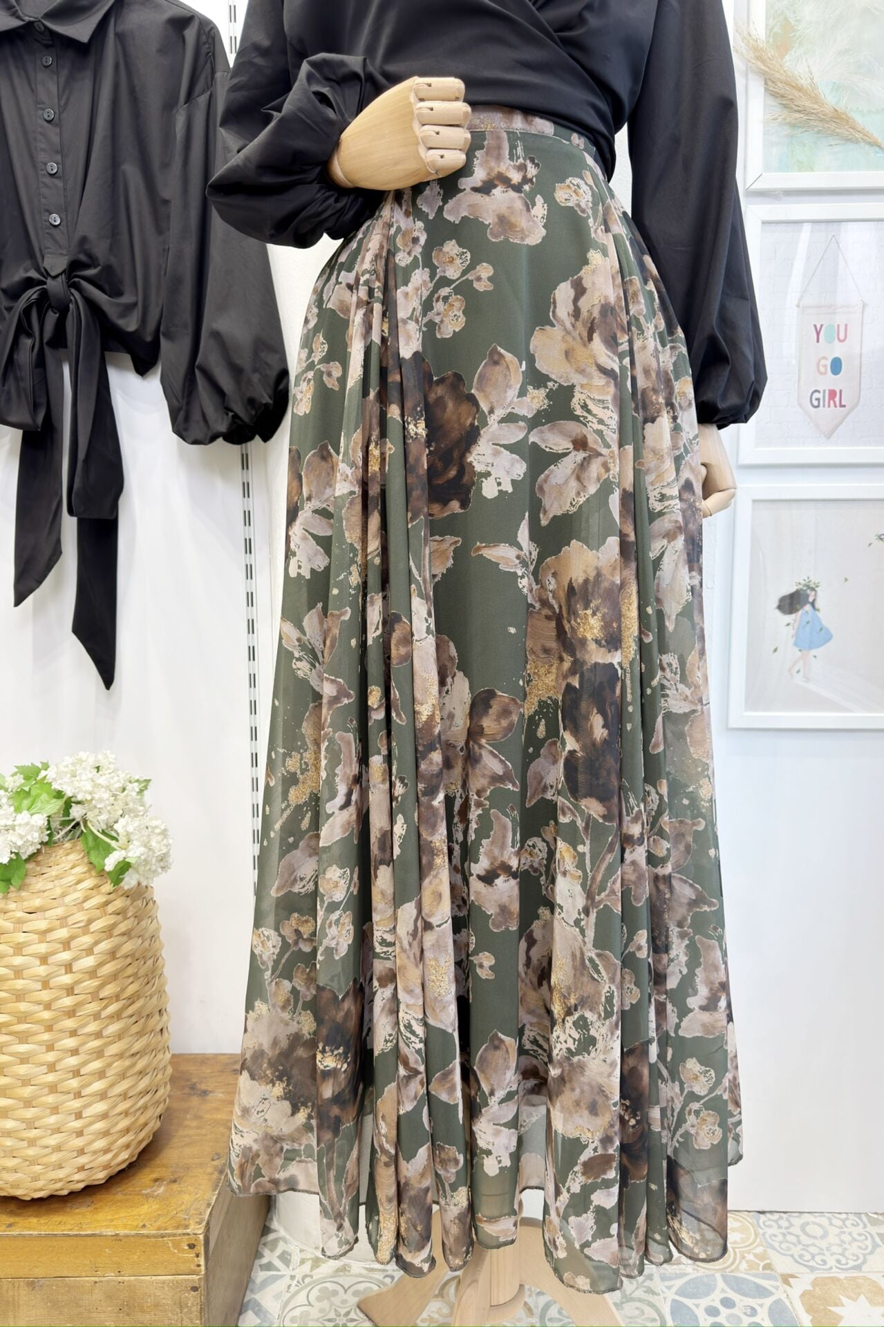 Yeşil Çiçek Desenli Betty Şifon Etek