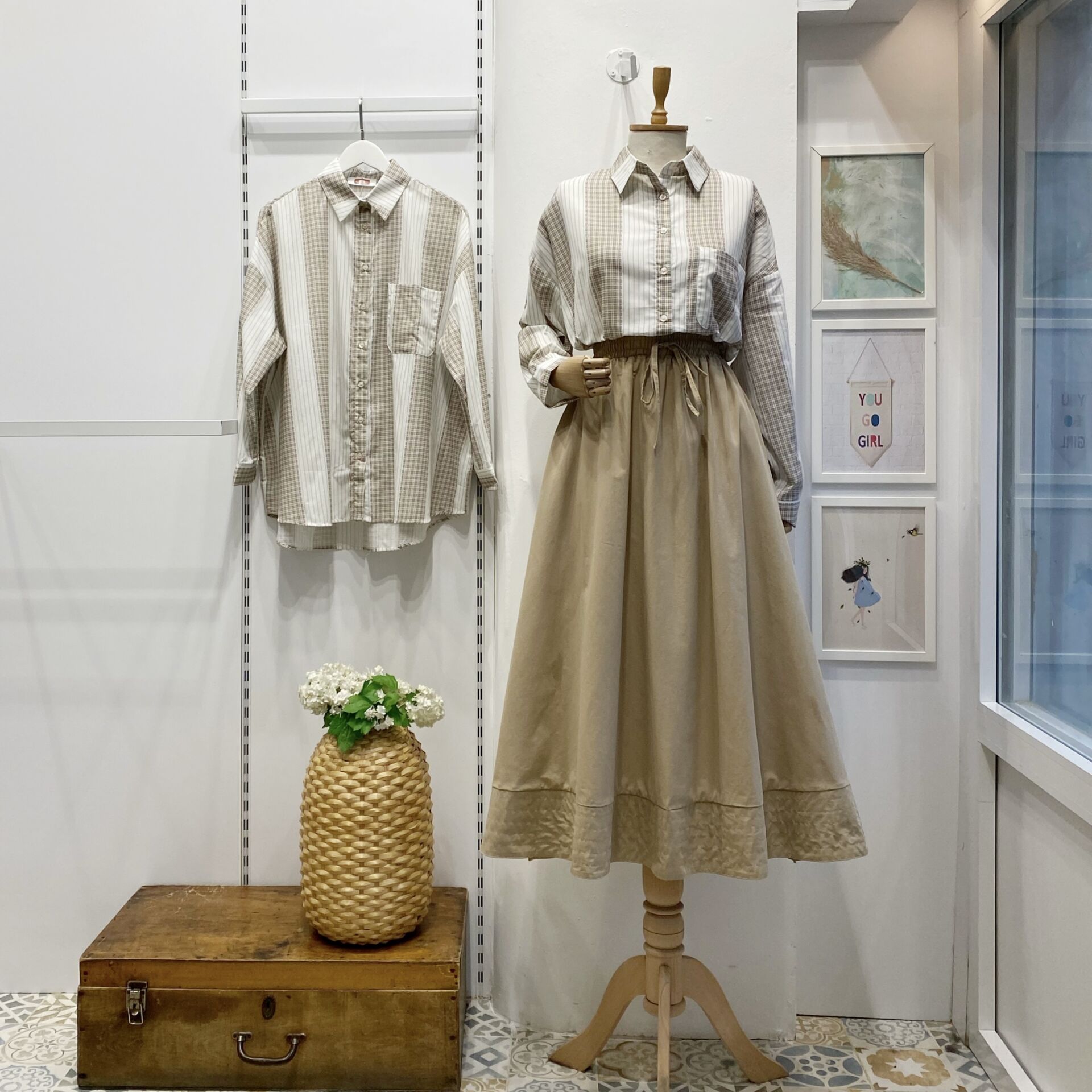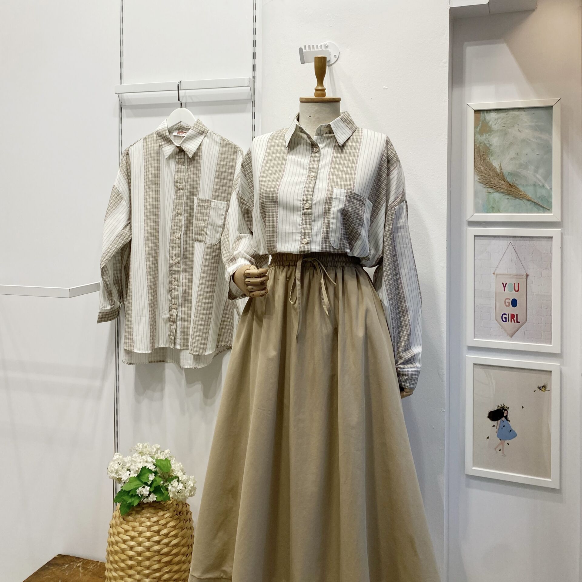 Yeşil Çizgili Oversize Viskon Gömlek