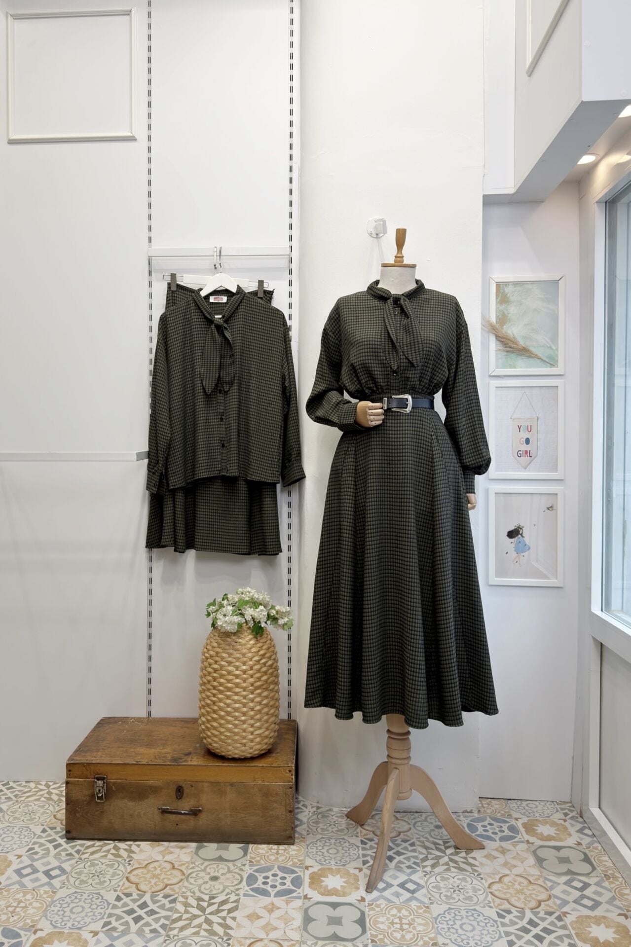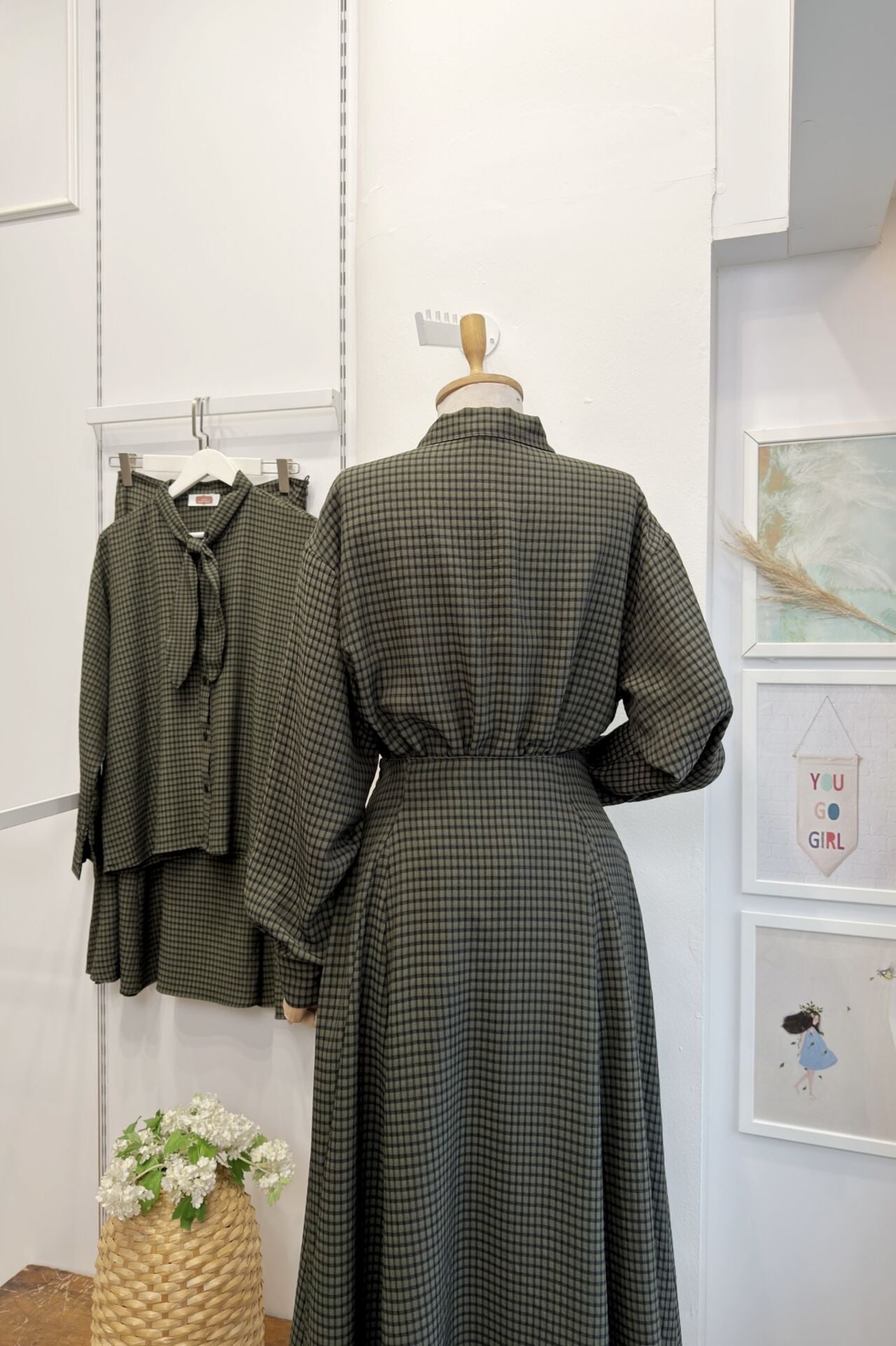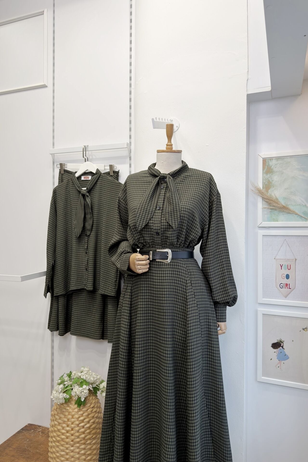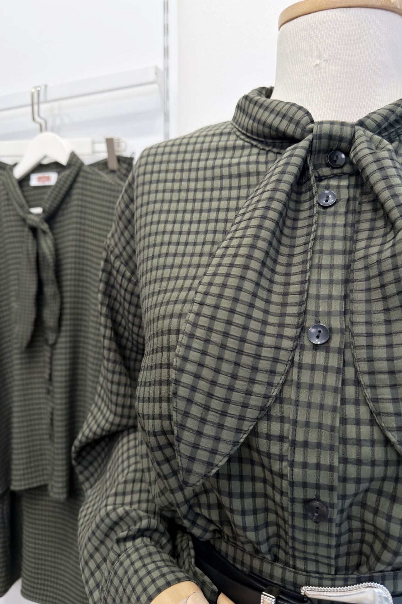 Yeşil Fular Yaka Detaylı Pötikareli Rowen Takım