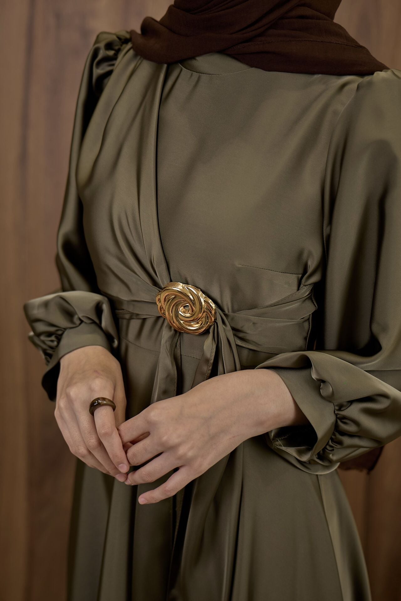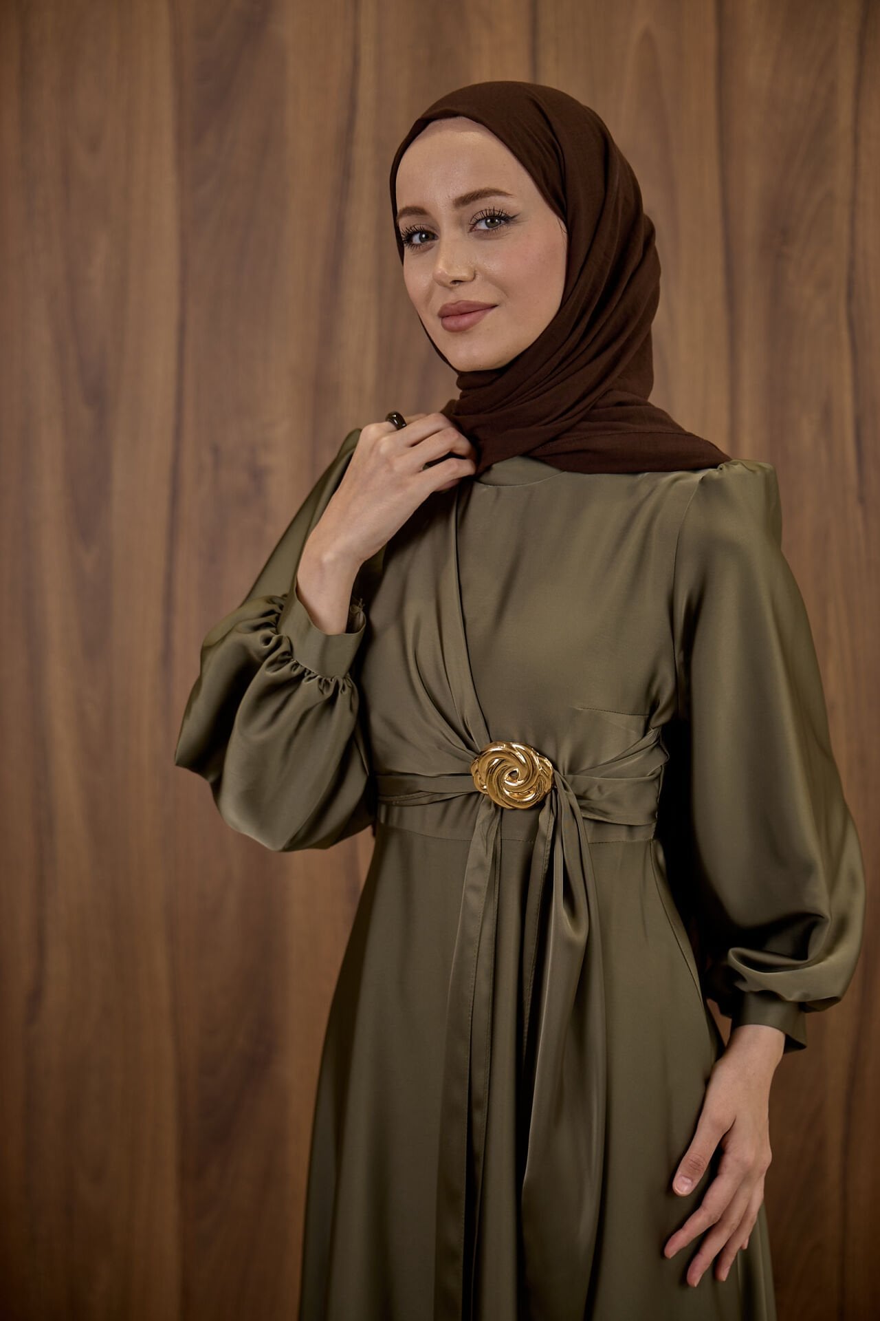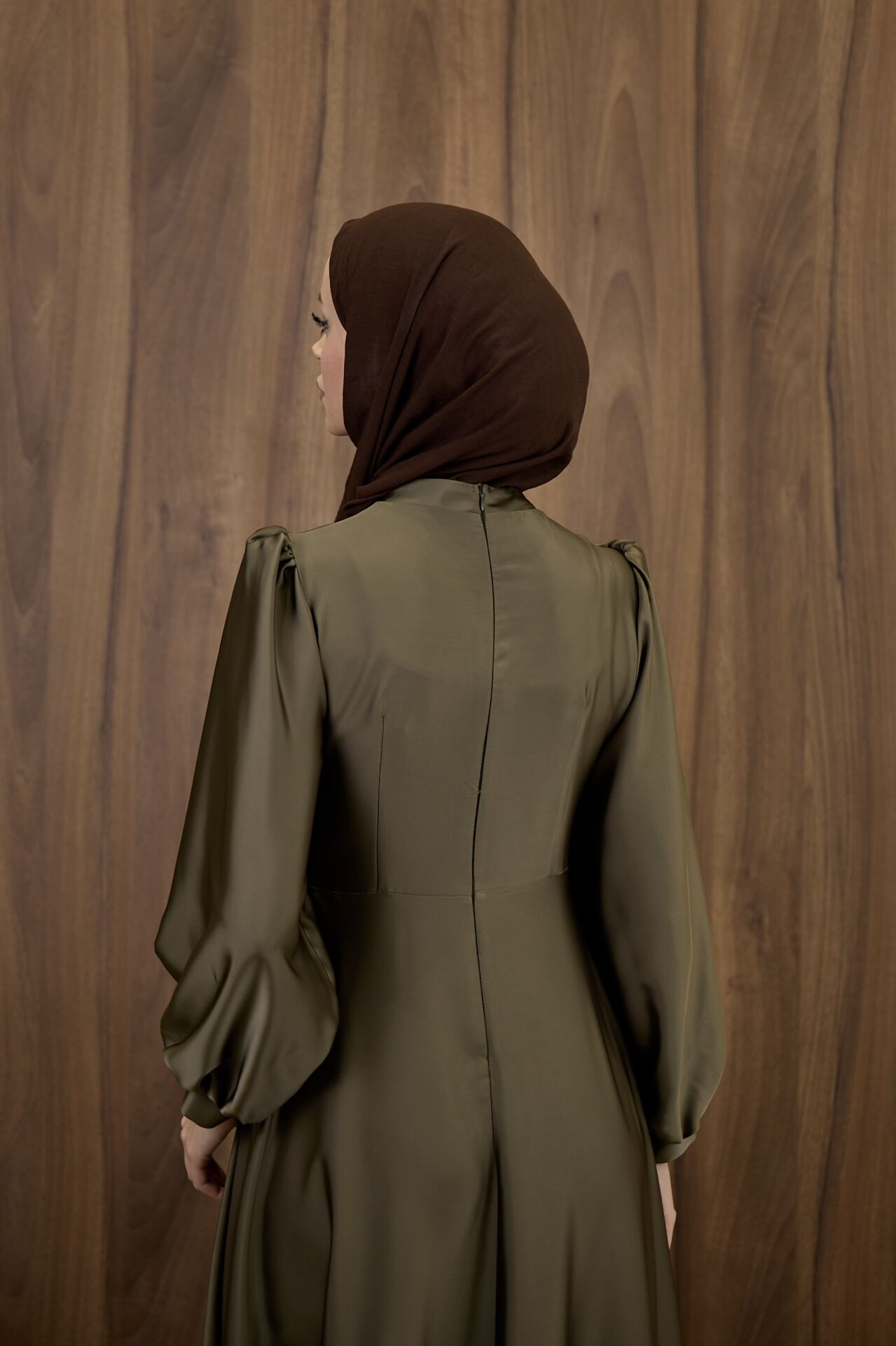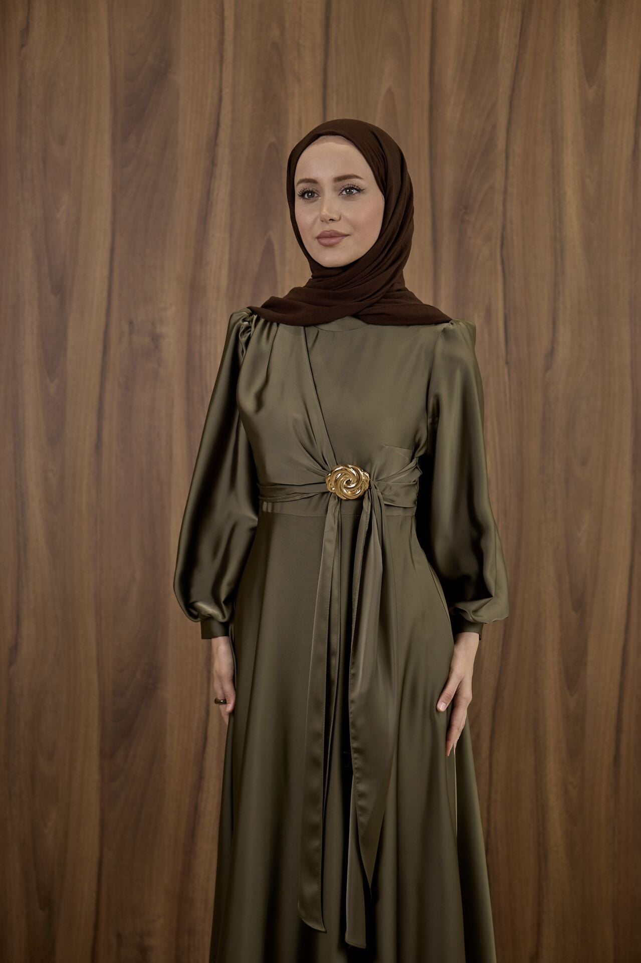 Haki Yeşili Goldine Saten Abiye