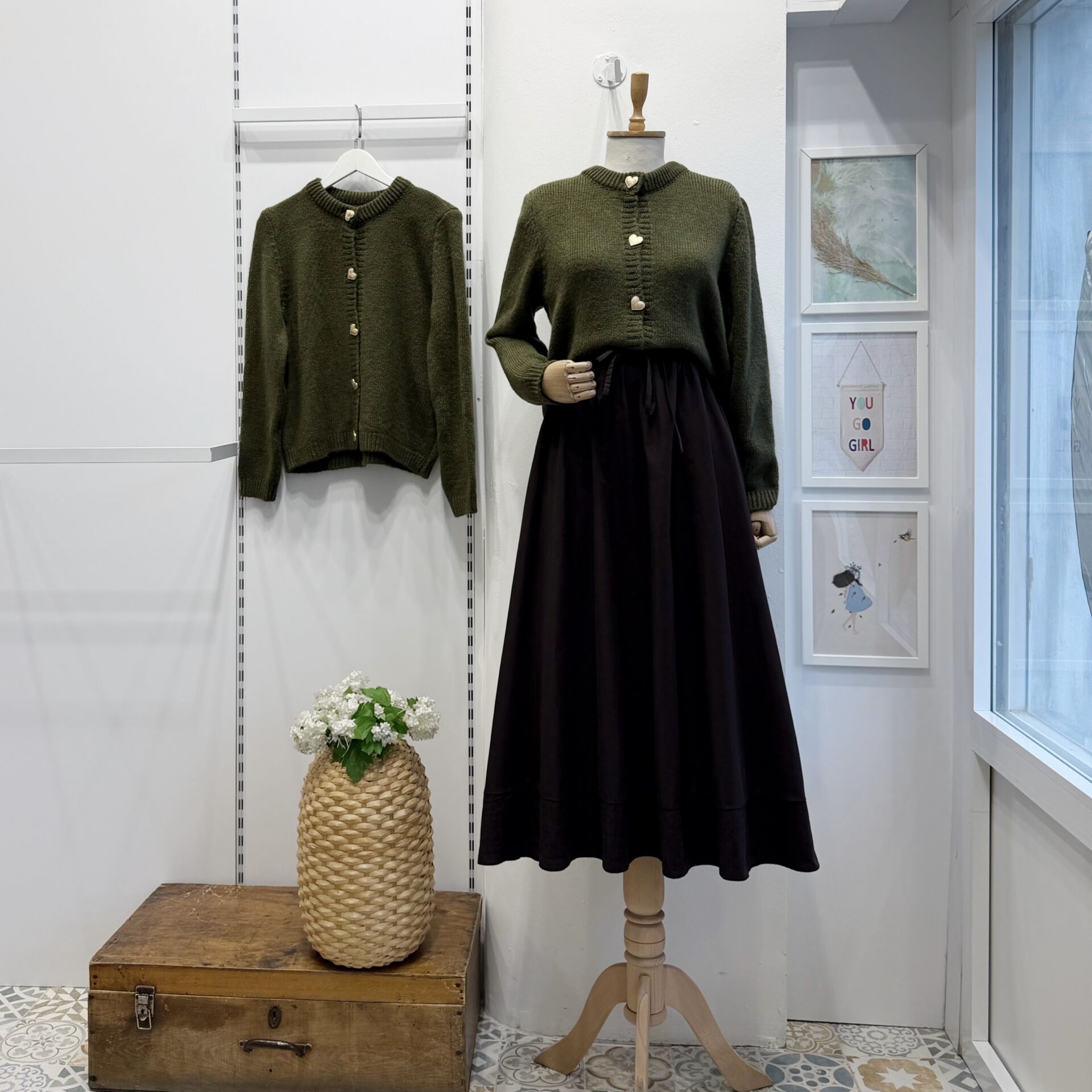 Yeşil Kalp Düğmeli Hırka