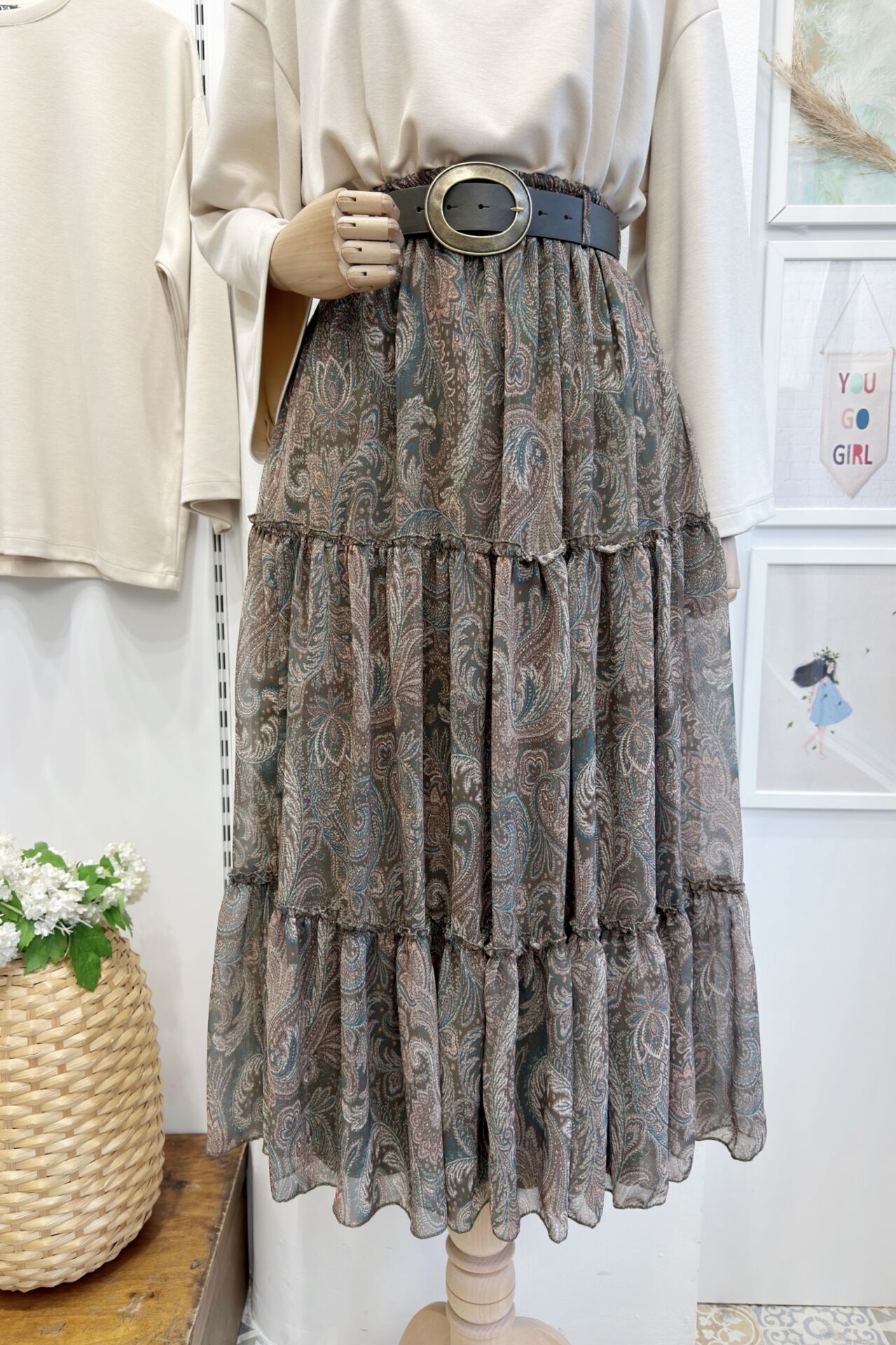 Yeşil Kat Kat Kemerli Şifon Etek
