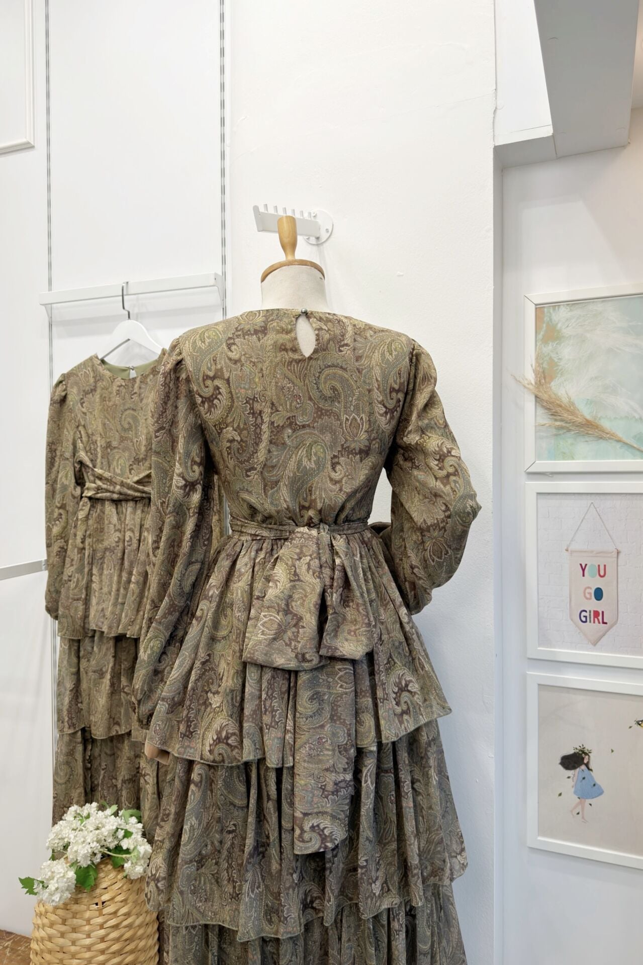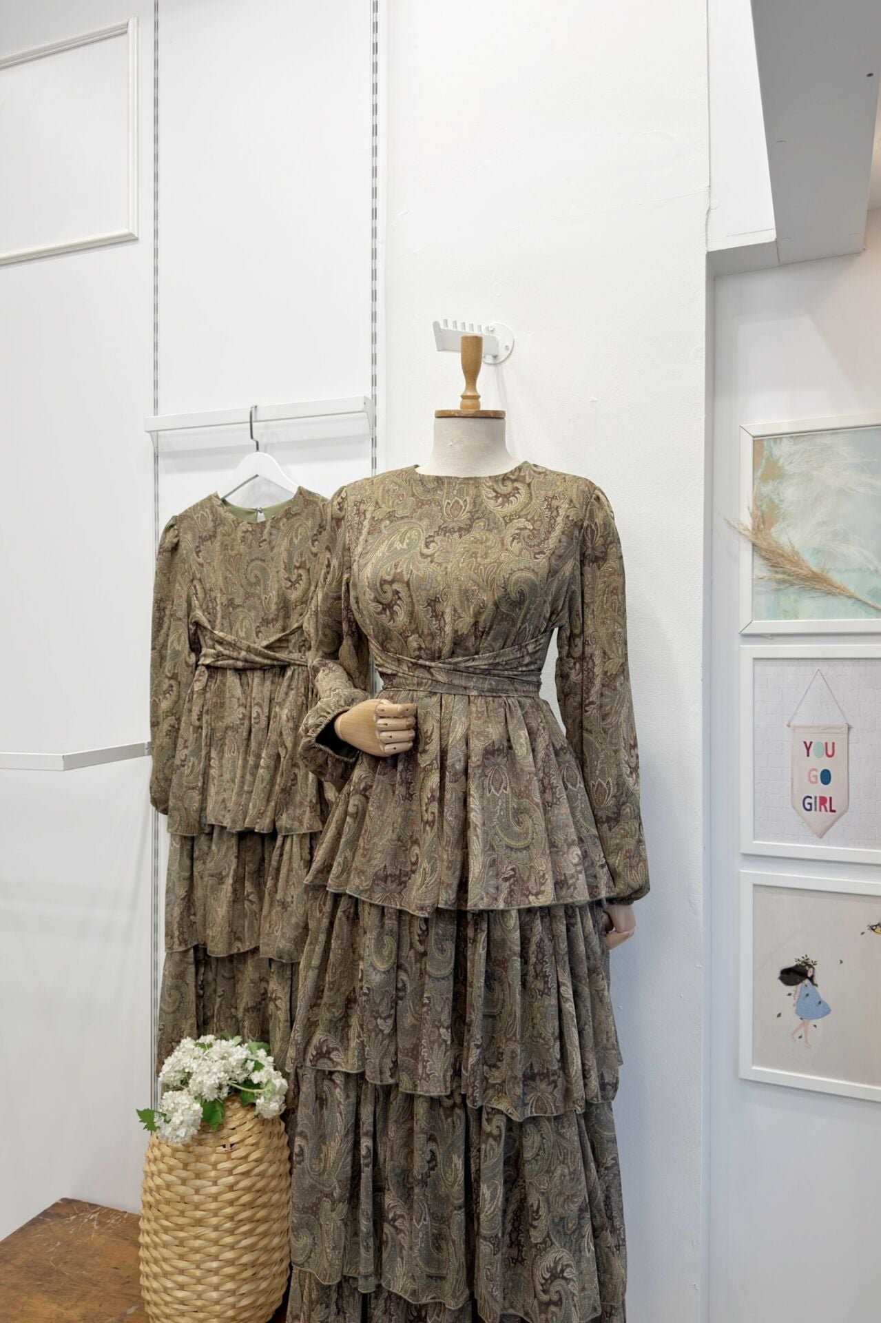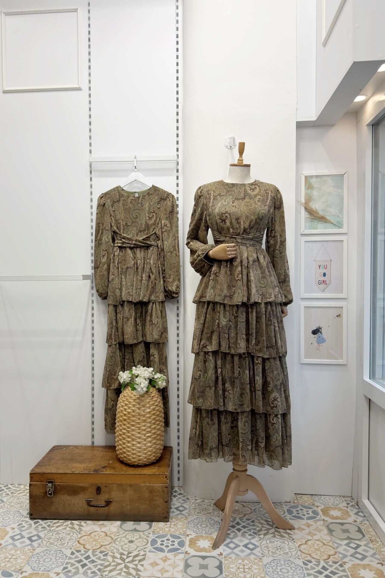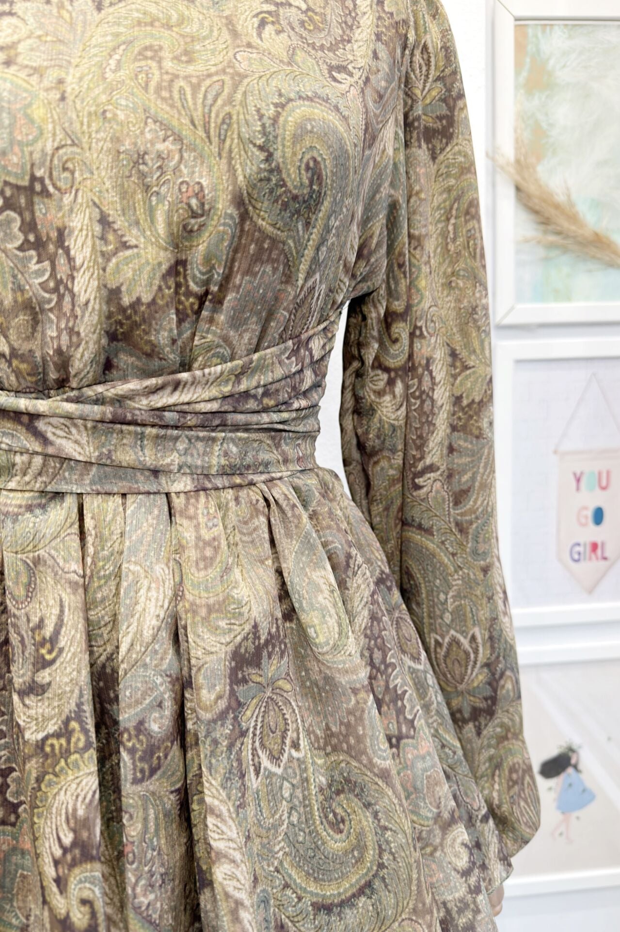 Yeşil Şal Desenli Kat Kat Elbise